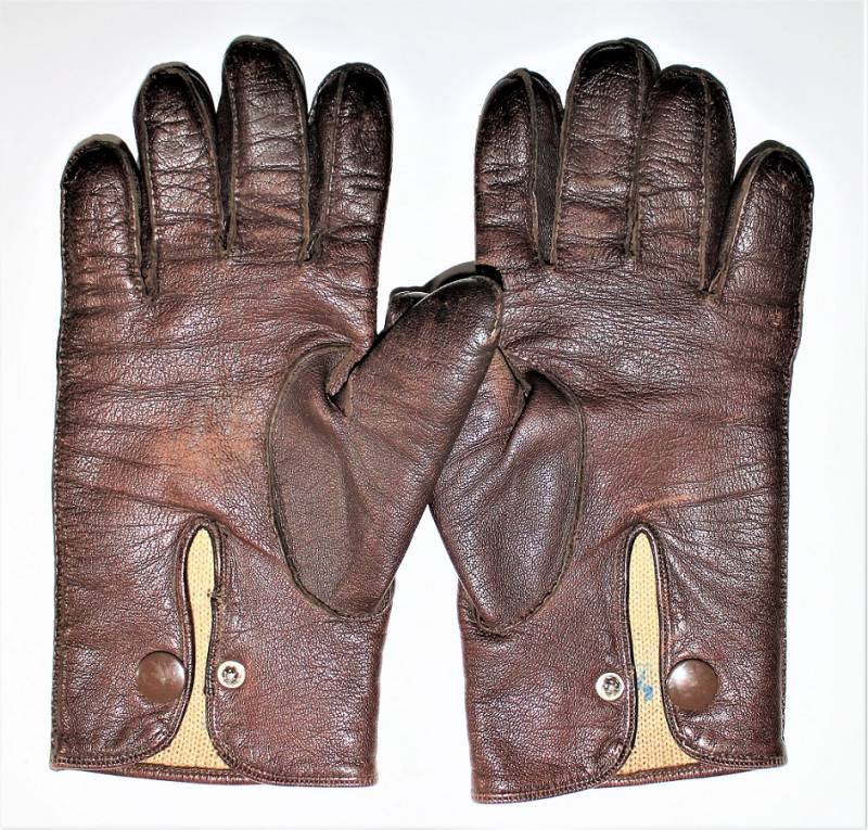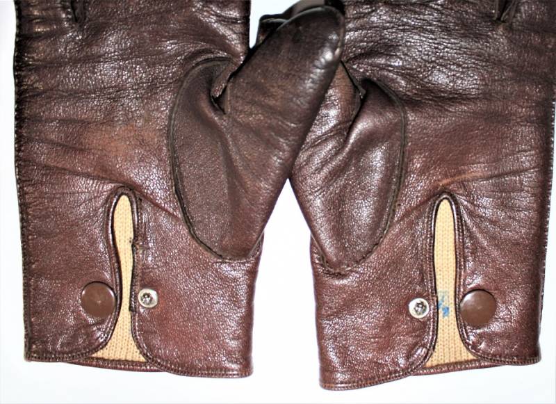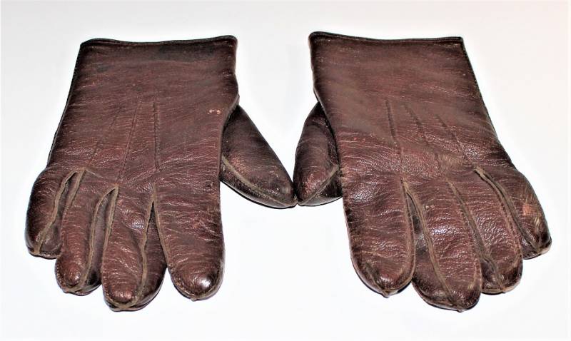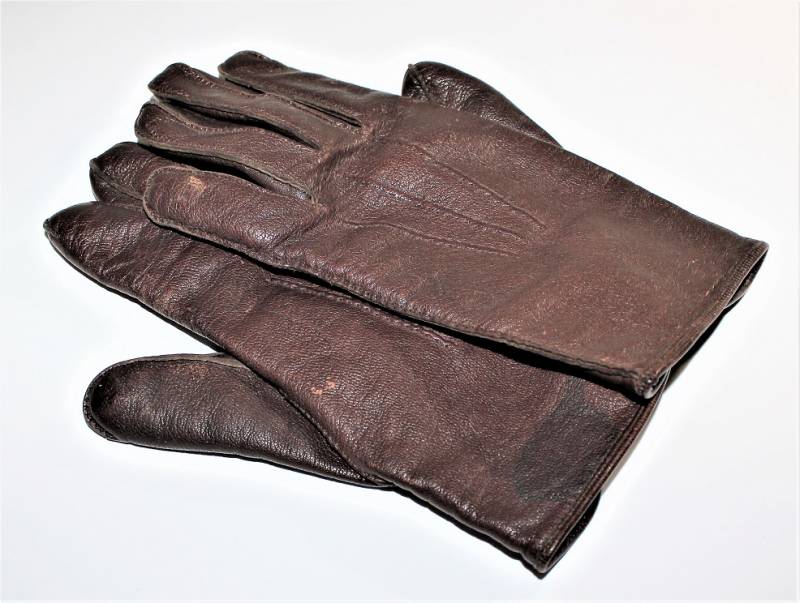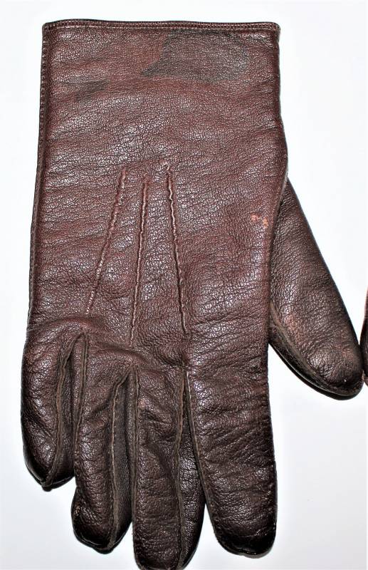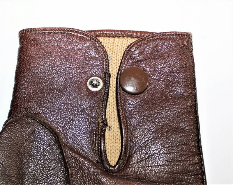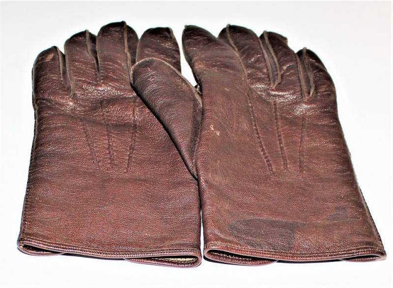 Guanti in pelle color marrone in dotazione agli Ufficiali WH-LW-SS, condizioni ottime, senza buchi o strappi, cuciture perfette, solo con leggera patina del tempo e dellŽuso, poco usati, taglia media, marcati internamente con numero taglia (8,5). Molto rari. Originale 100% WWII periodo.