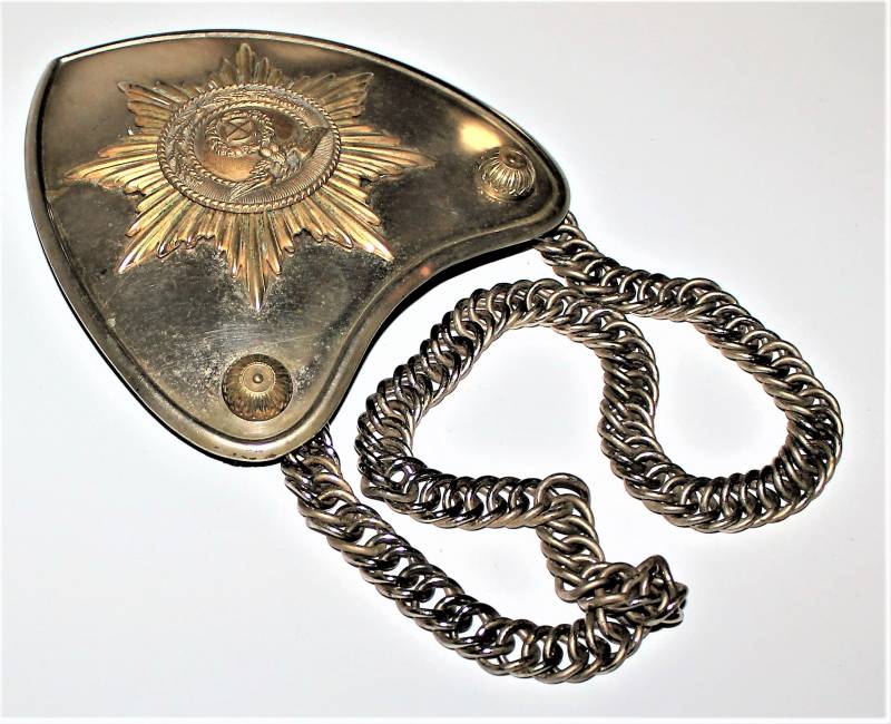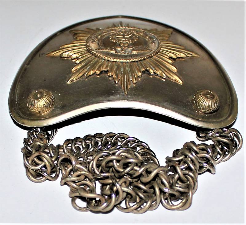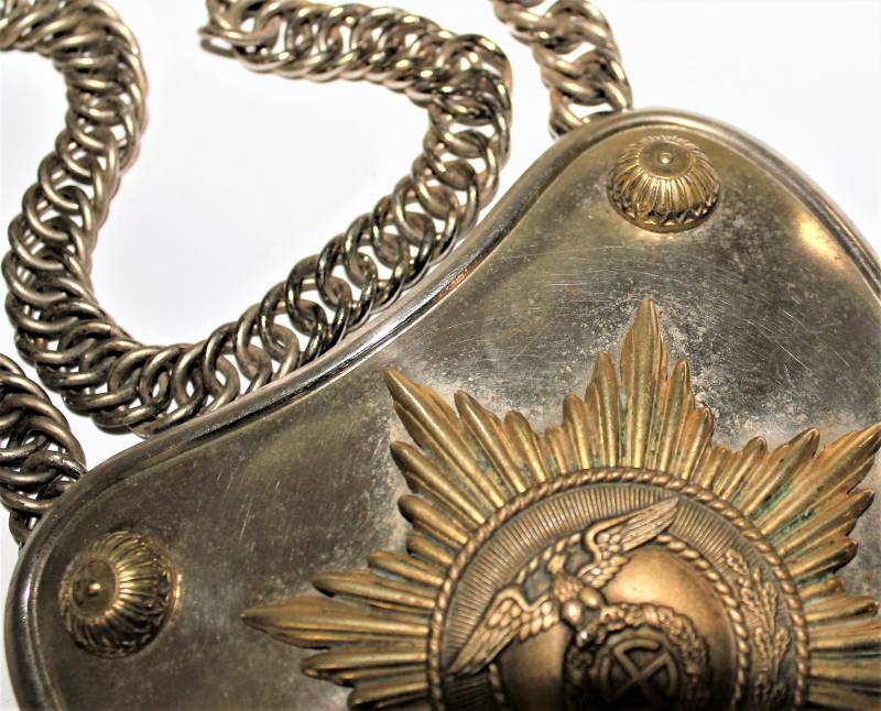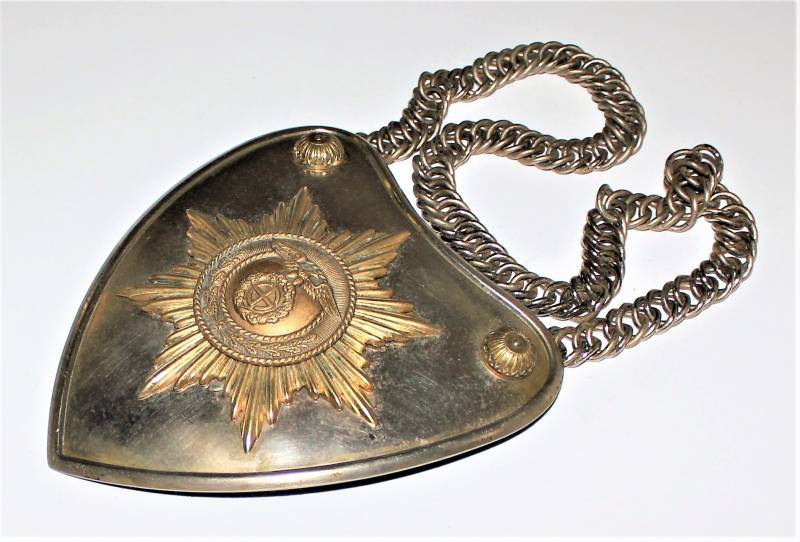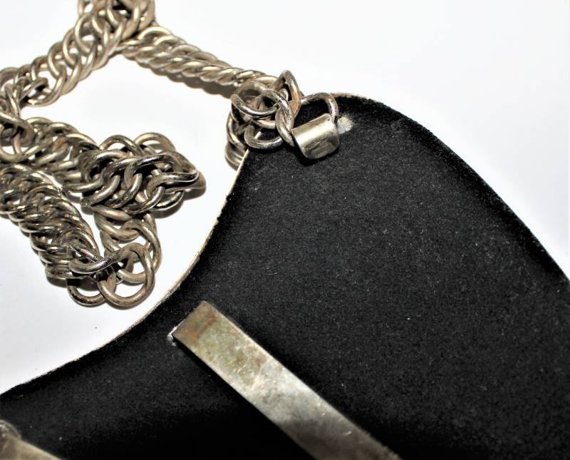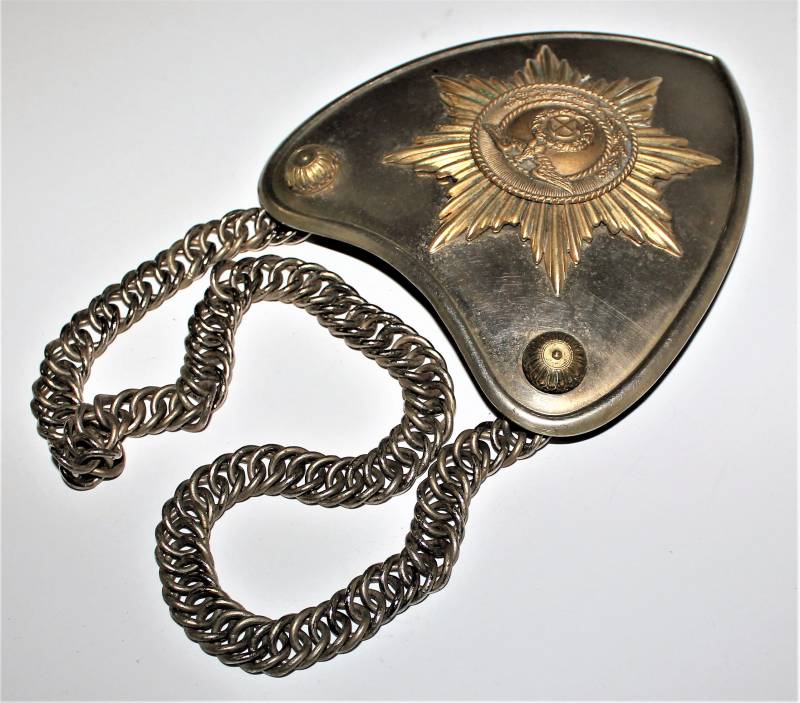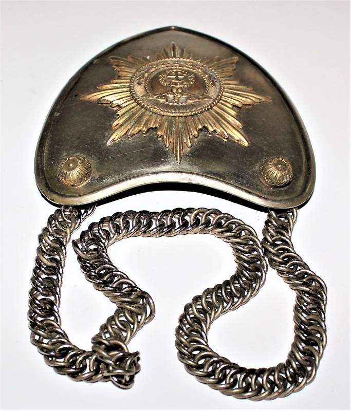 Bellissima Gorgiera delle SA pettorale per porta bandiera in ottime condizioni solo con leggerissima patina del tempo e dellŽuso, completa in ogni sua parte, non restaurata o riparata, sul retro rivestita con panno nero e distintivo RZM con numero 21 di riferimento del costruttore. Originale 100% WWII periodo.