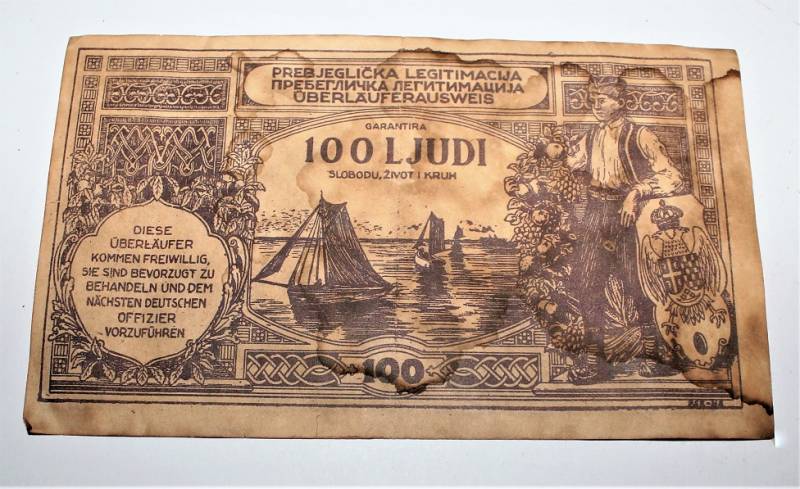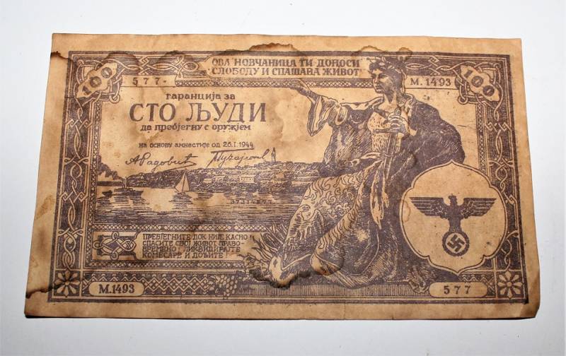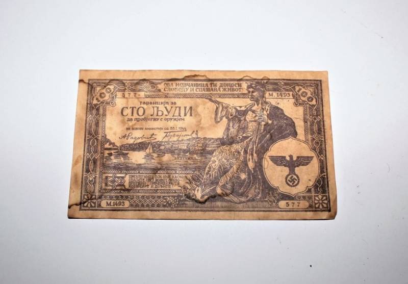Banconota 100 LJUDI emissione Tedesca per paesi d´occupazione Jugoslavia-Montenegro in buone condizioni solo patinata del tempo.