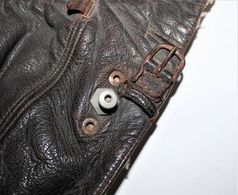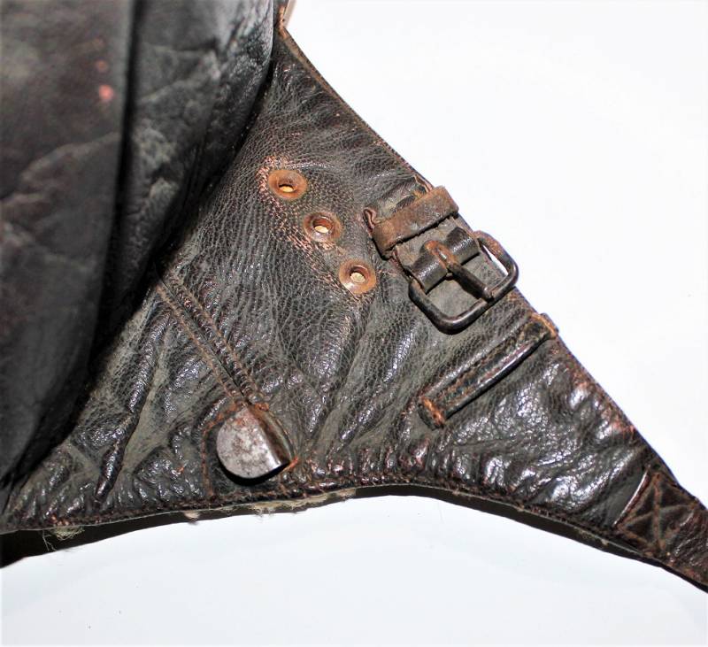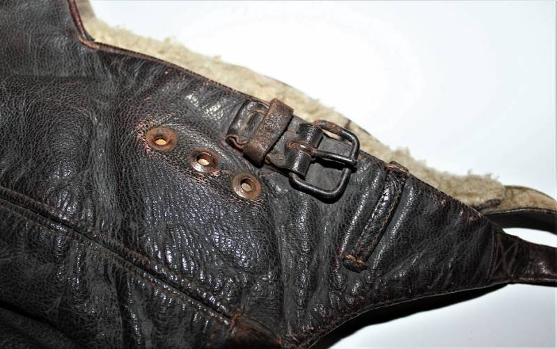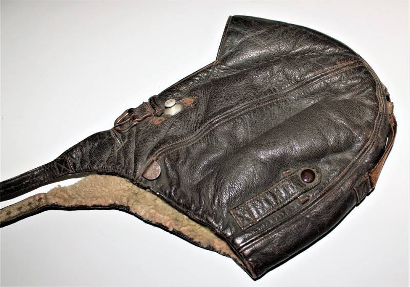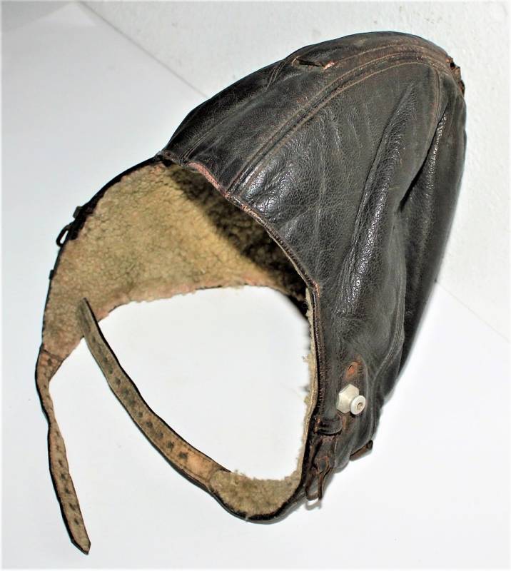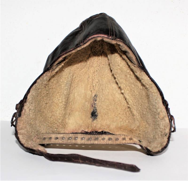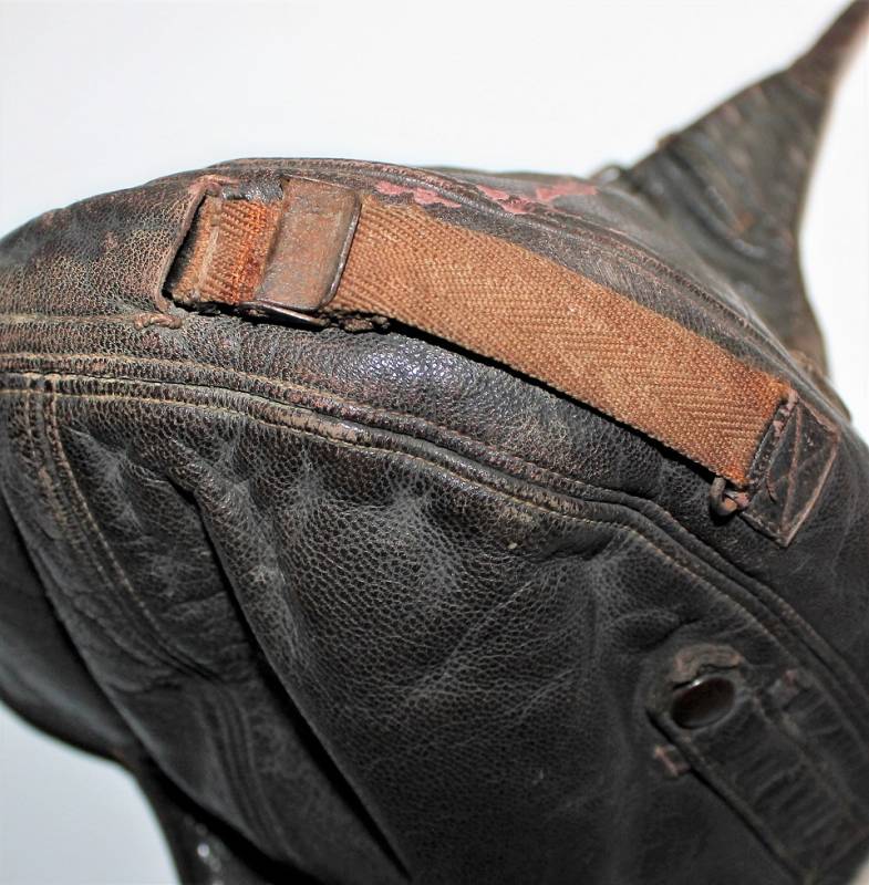 Cuffia da pilota e personale di volo della Luftwaffe in buone condizioni, completa in ogni sua parte, non restaurata o riparata, senza buchi o strappi, con leggeri segni del tempo e dellŽuso, realizzata in pelle marrone, interno in ottime condizioni completo di etichetta in tela in stoffa con RBN n.. e taglia.