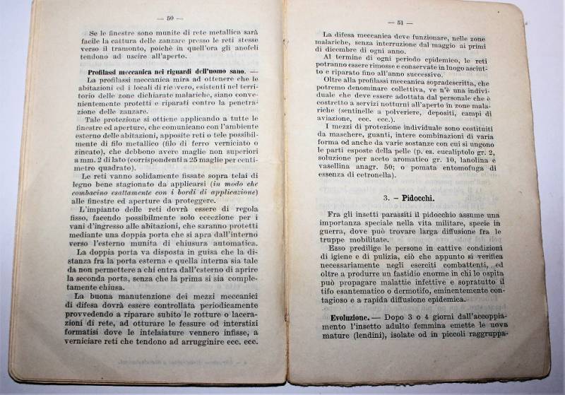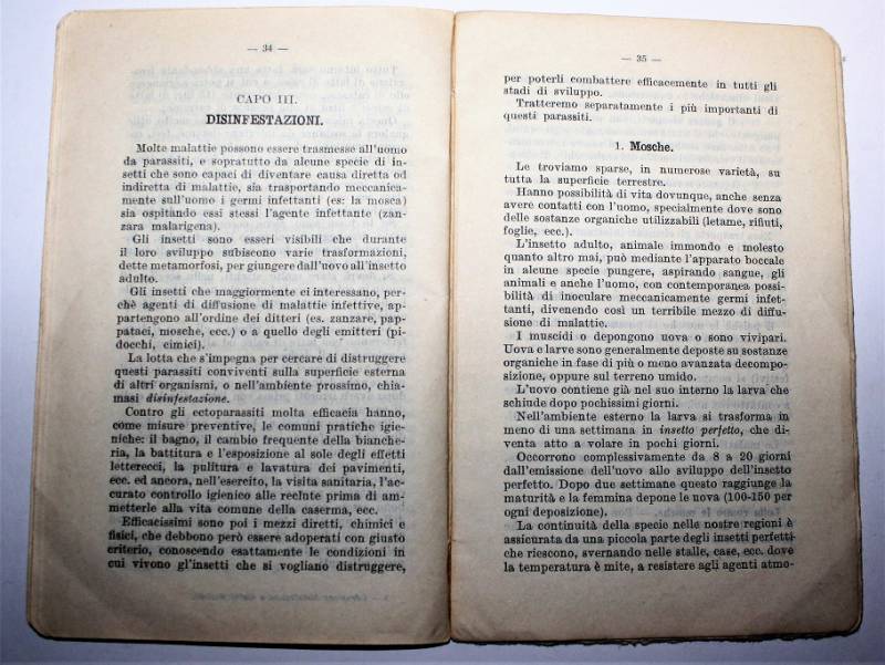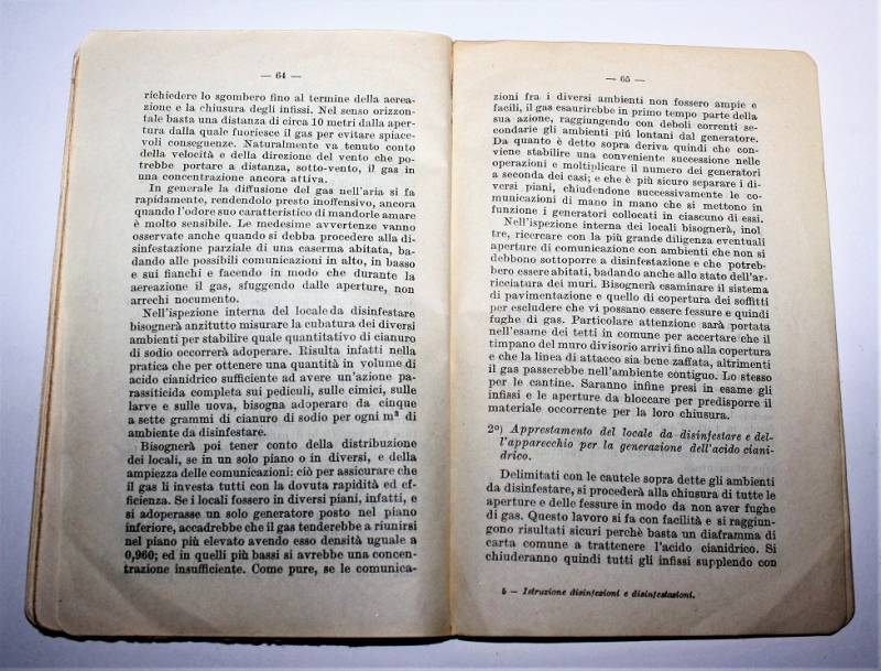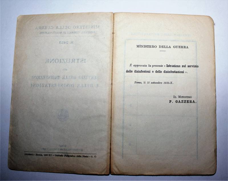 Libretto del Ministero della Guerra istruzioni per disinfezioni e disinfestazioni edizione stampata a Roma il 17 Settembre 1932, buone condizioni solo con patina del tempo ma completo di tutte le sue pagine.