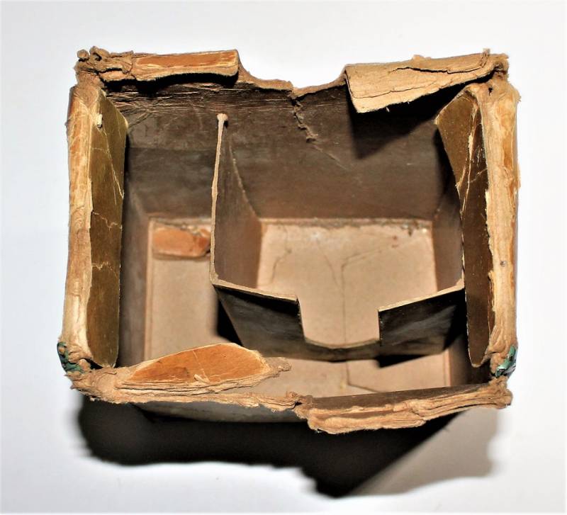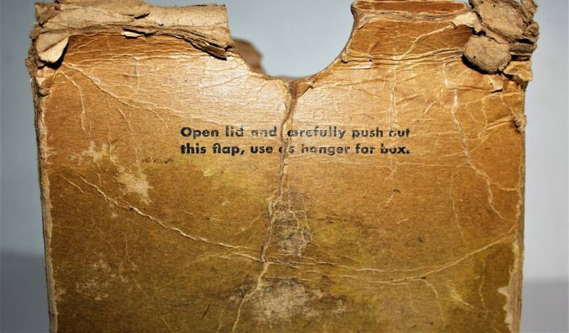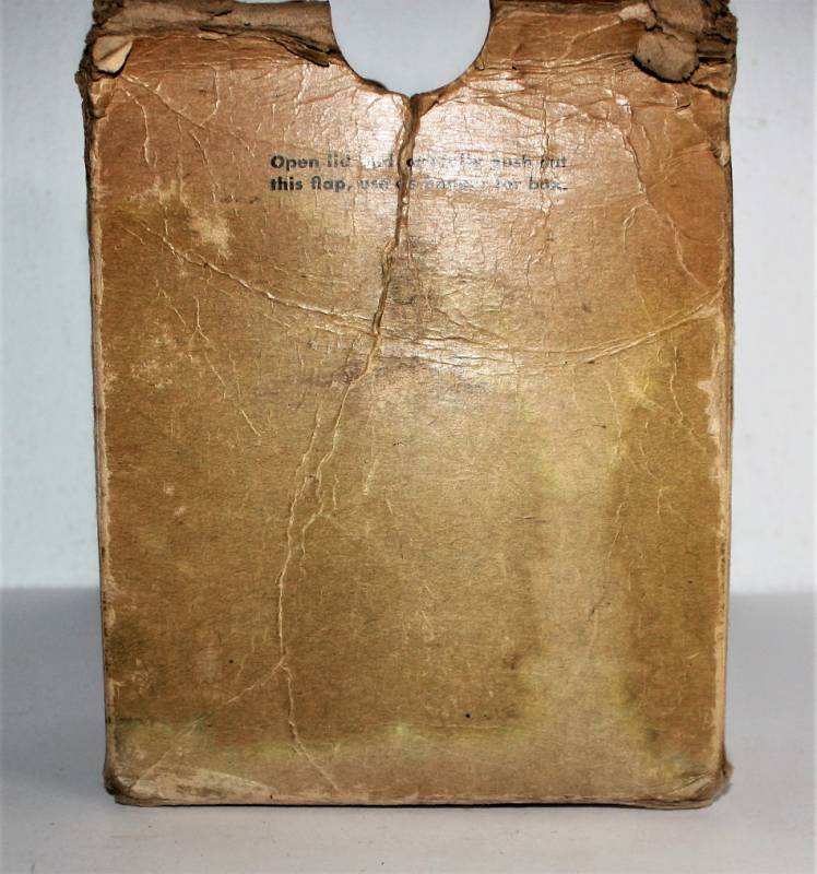 Rara scatola di cartone per contenimento maschera ossigeno modella A-14 da Pilota USA, condizioni discrete ma mancante del coperchio.