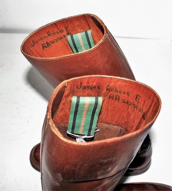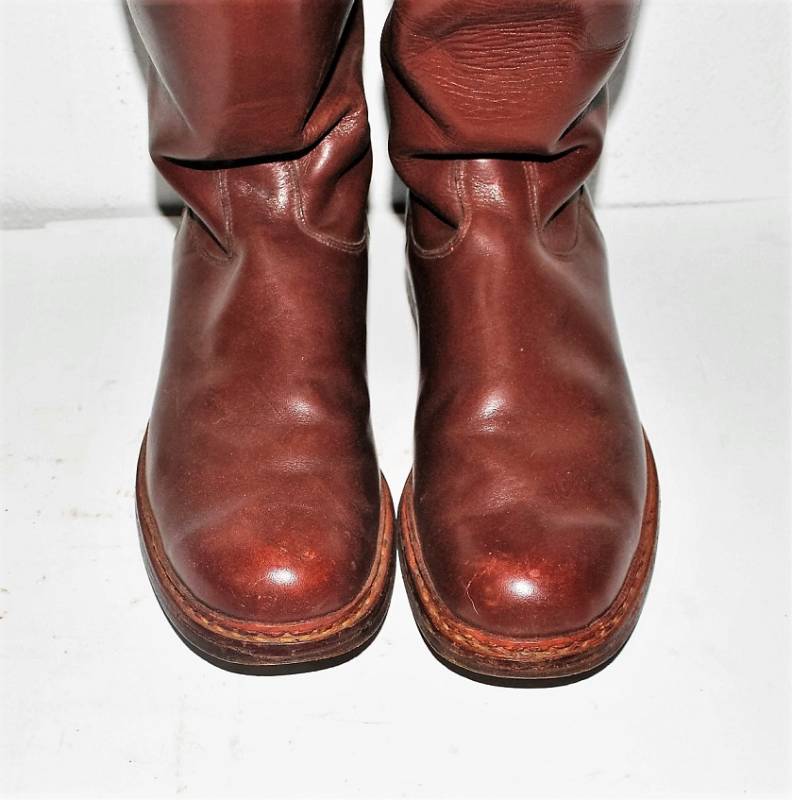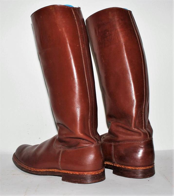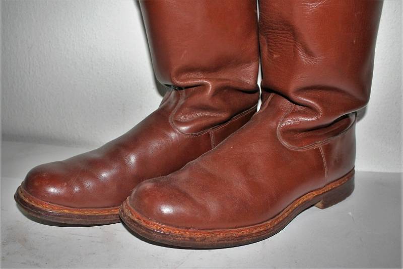Stivali da ufficiale U.S.A nata in cuoio marrone, stupendi, quasi come nuovi, appena portati, nome del soldato scritto internamente. Taglia 43. Originale 100% WWII periodo.