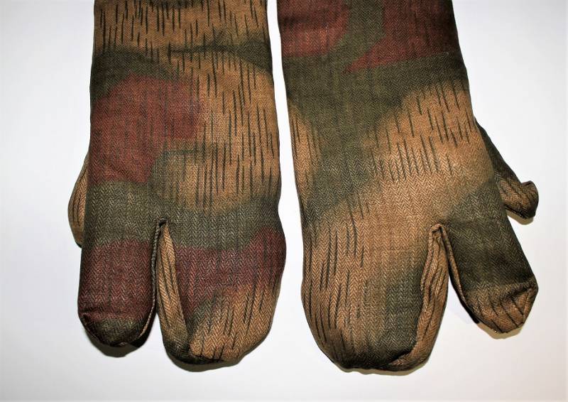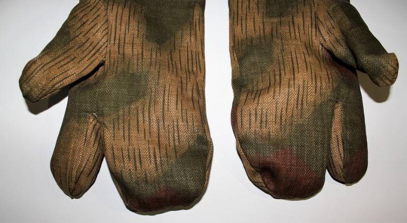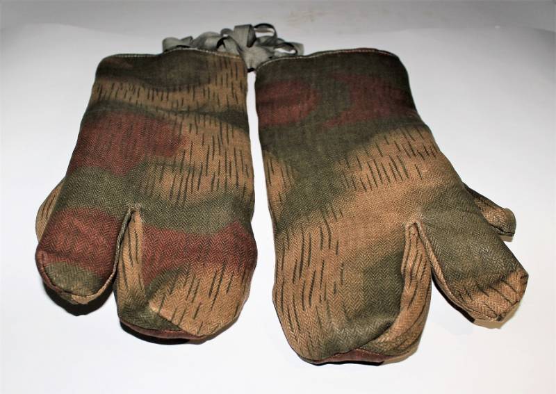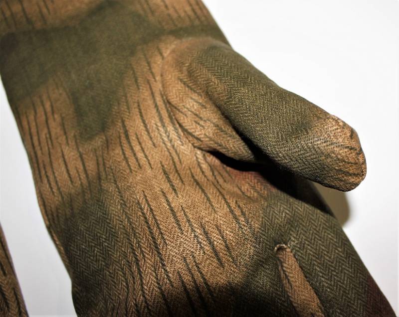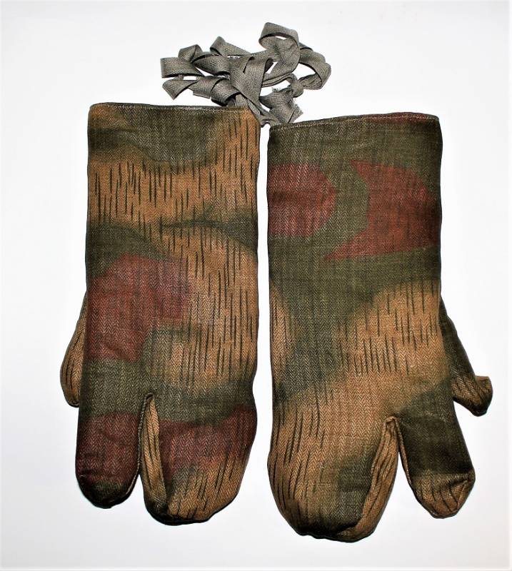 Guanti mimetici della WH-LW, mai usati, fondo di magazzino perfetti, realizzati in tela drillick marcati con logo fabbricante e data 1942. Originali 100% WWII periodo.