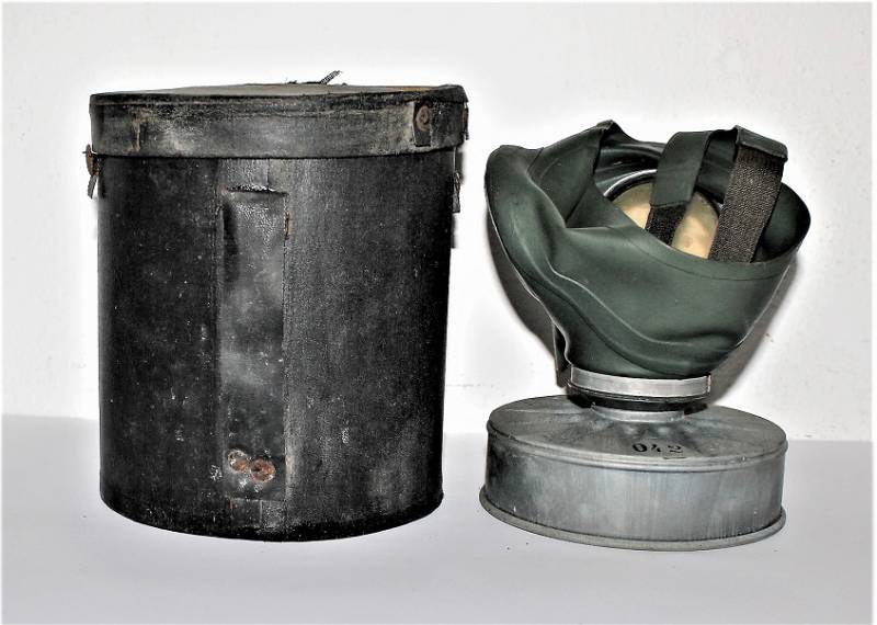 Maschera anti gas Luftschutz, in contenitore di cartone molto vissuto, marcato. Maschera anti gas in condizioni perfette, marcata e completa. Originale 100% WWII periodo.