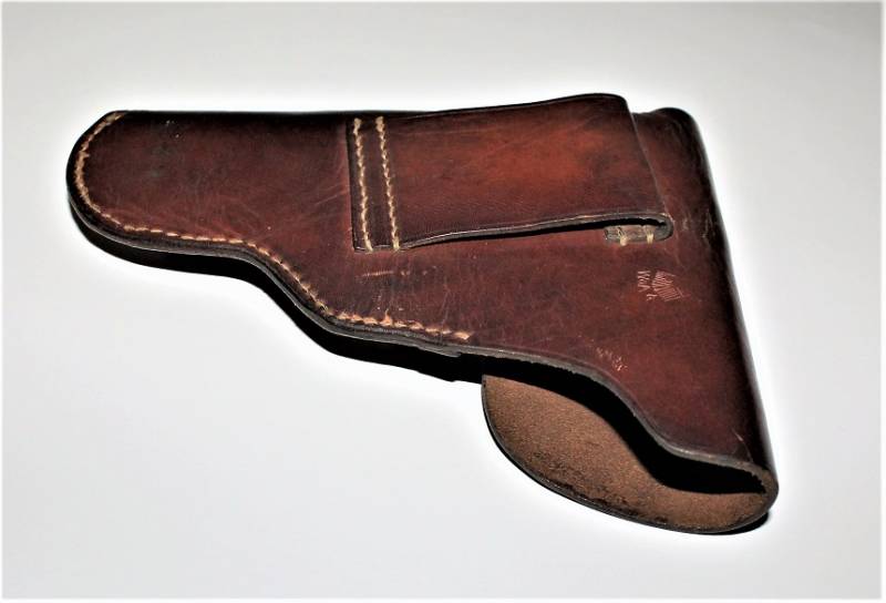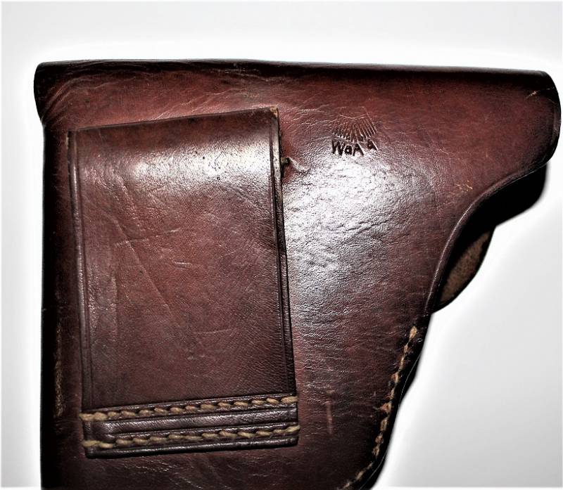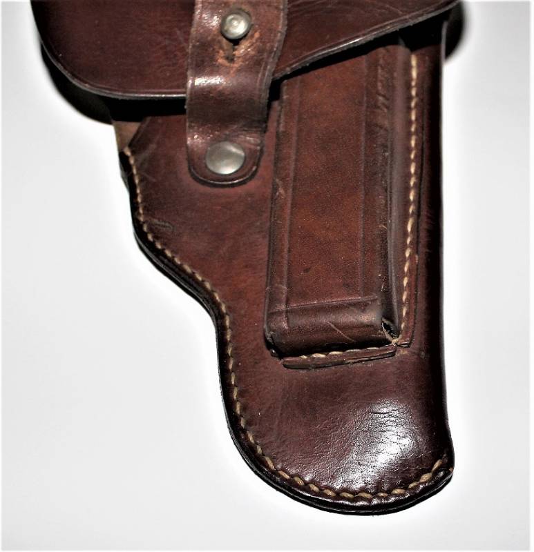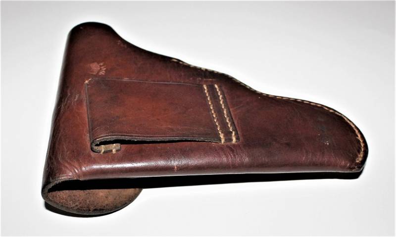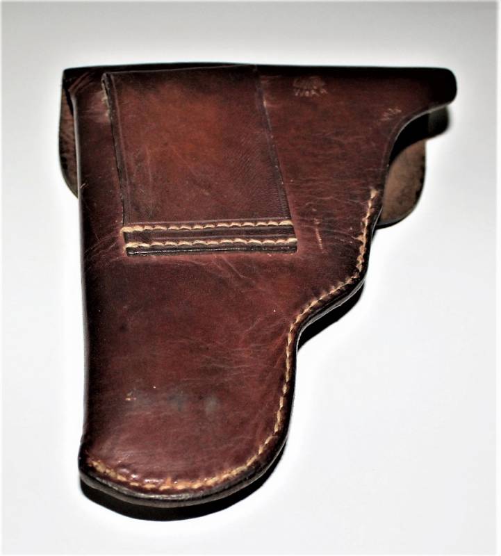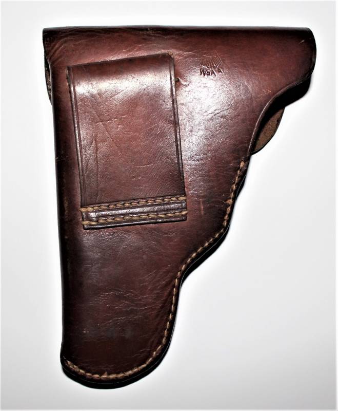 Fondina di 1°tipo per pistola MAUSER mod.27 nata in pelle marrone in condizioni perfette, quasi pari al nuovo, non lesionata o restaurata, marcata sul retro con waffenamt. Originale 100% WWII periodo.