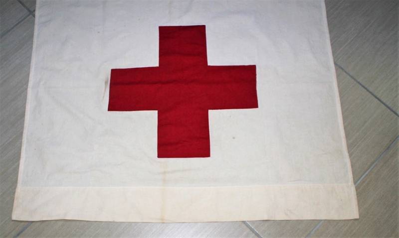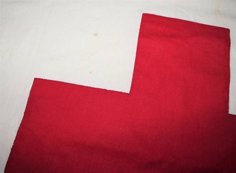 Bandiera della Croce Rossa tedesca, in ottime condizioni con patina del tempo e dellŽuso ma non lesionata, misure circa cm 80x60 Originale 100% WWII periodo.