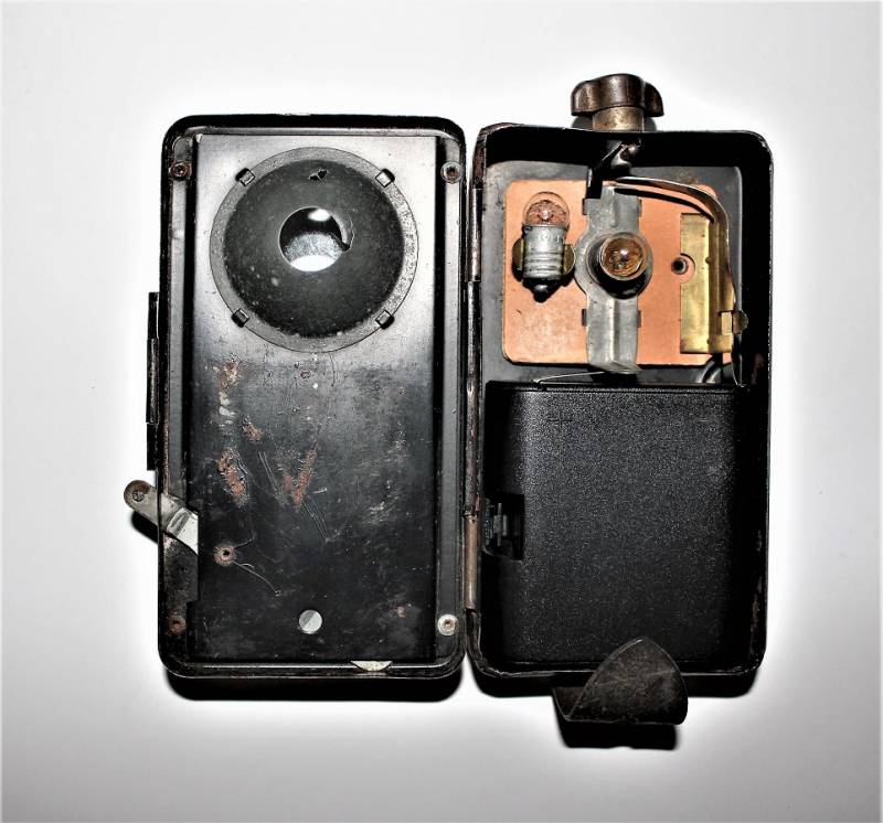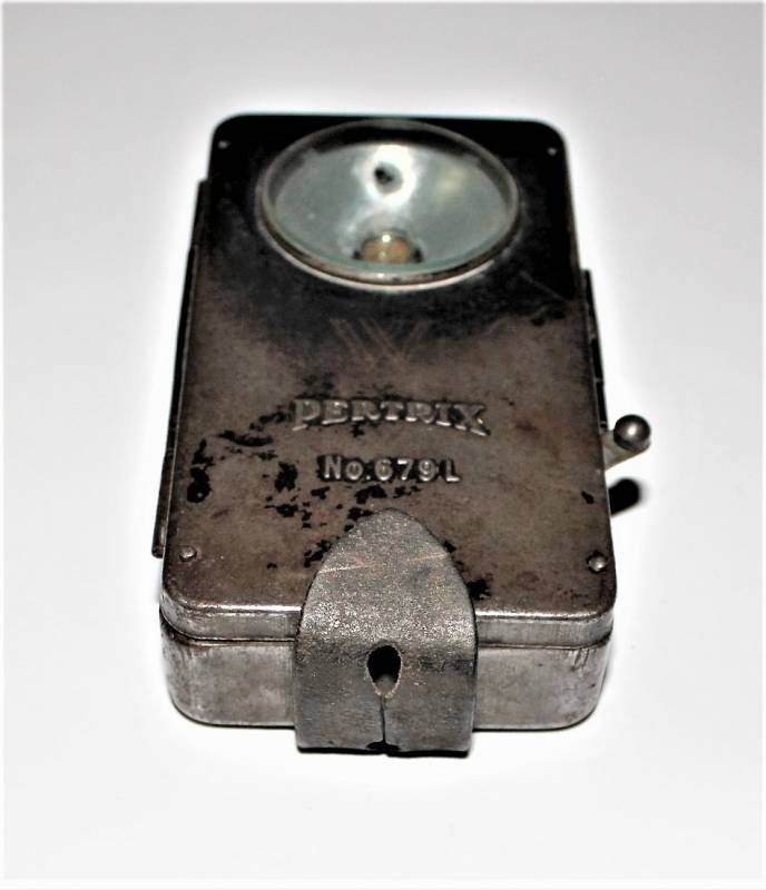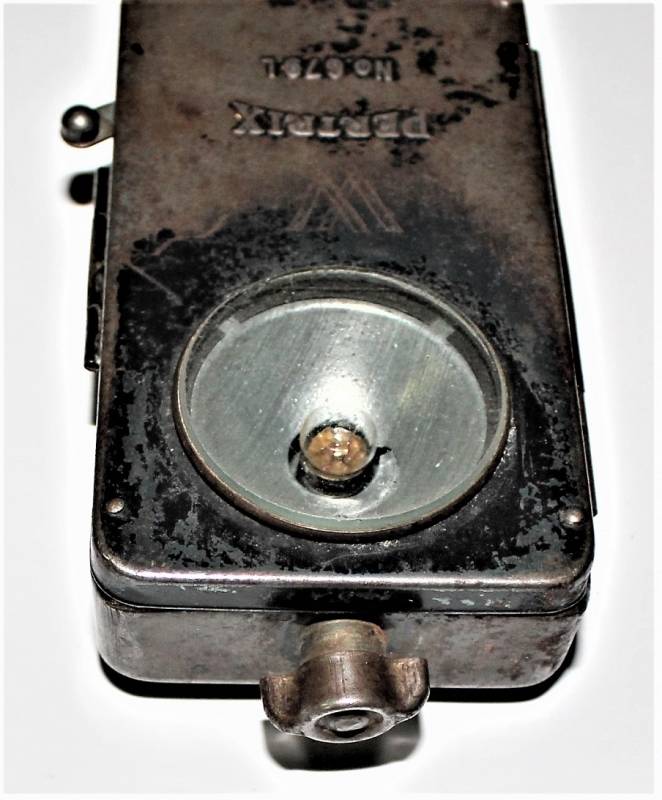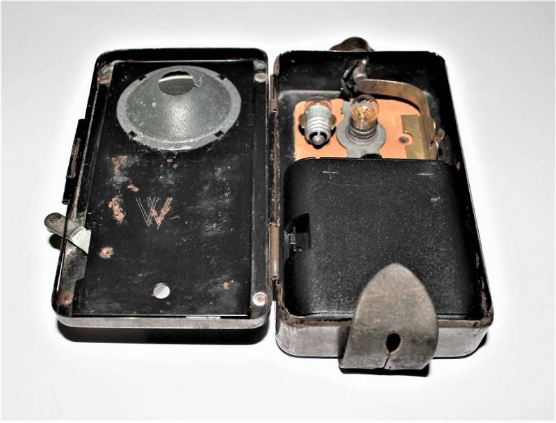 Lampada portatile WH-SS-LW, completa in ogni sua parte, funzionante, ma molto usata, marcata con nome fabbricante e numero di lotto. Originale 100% WWII periodo.