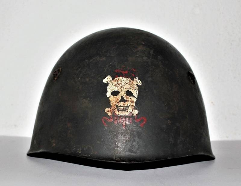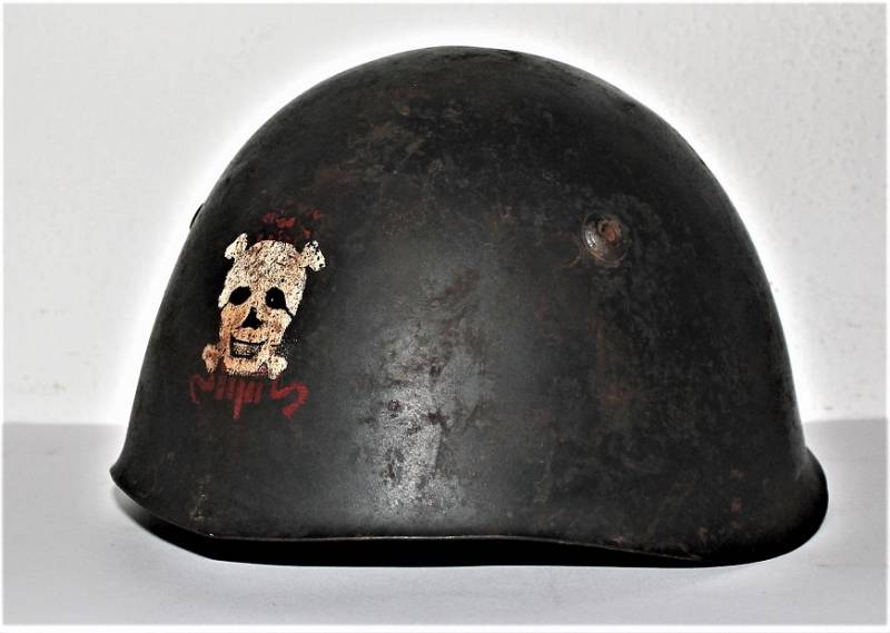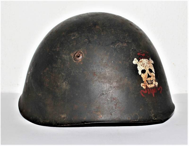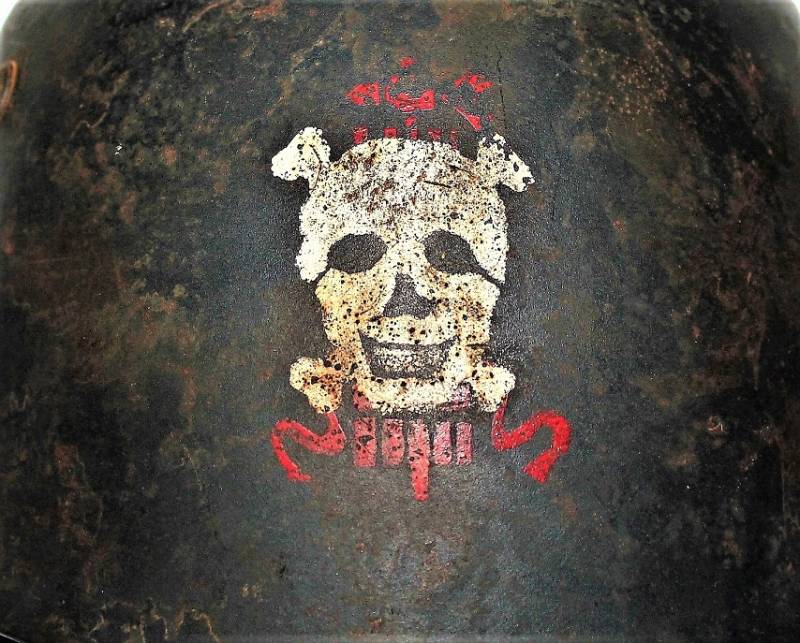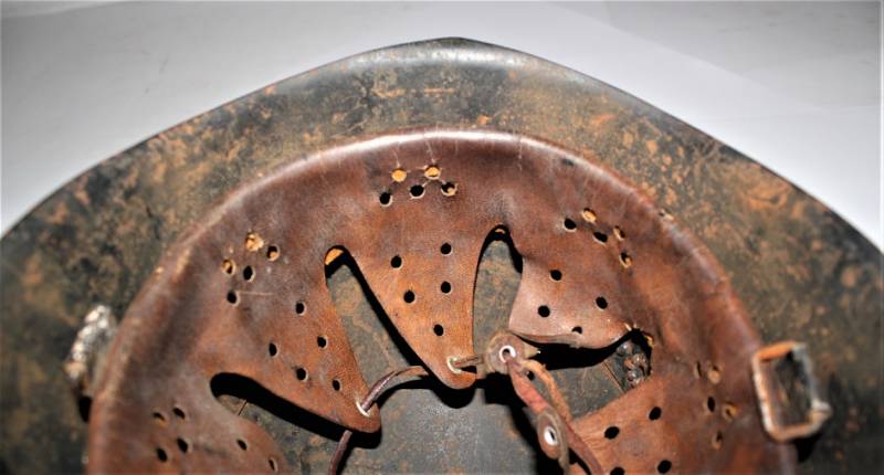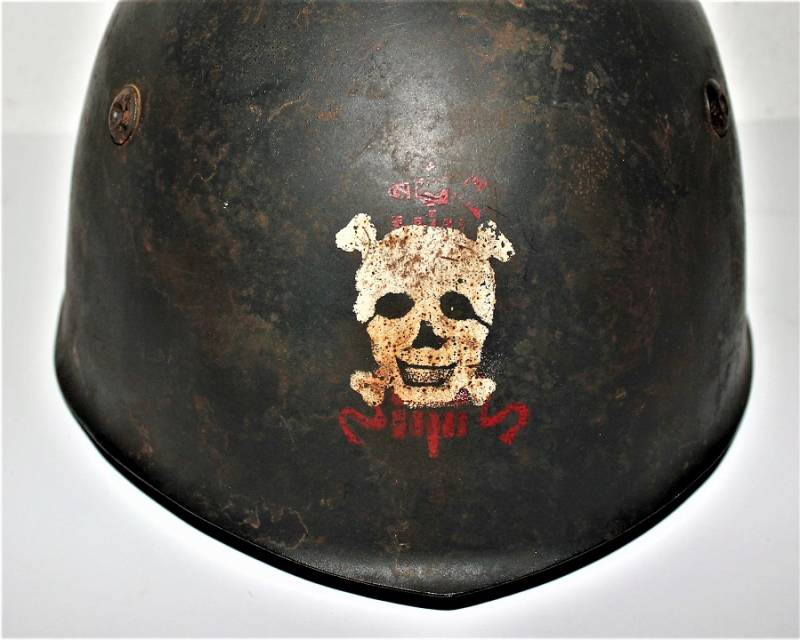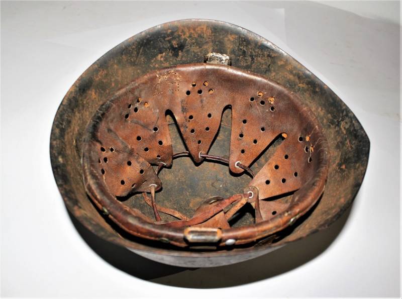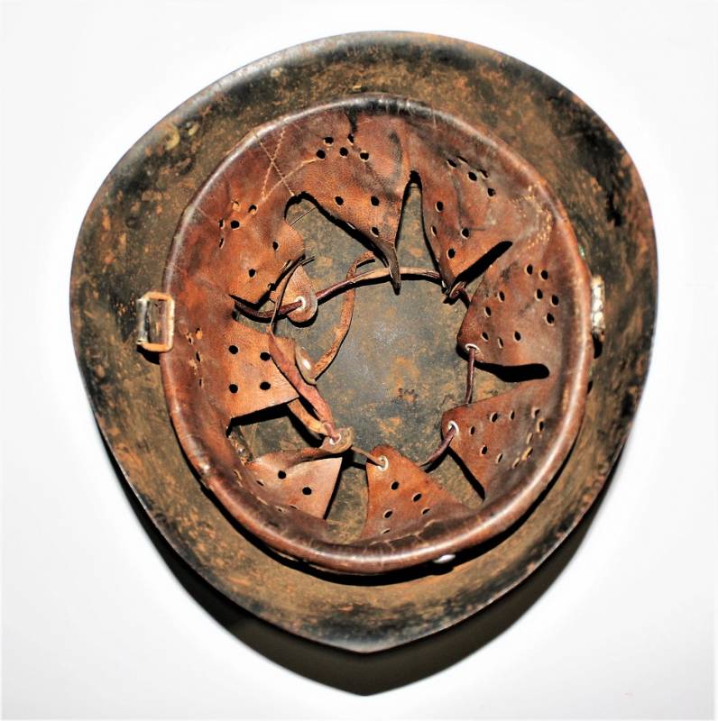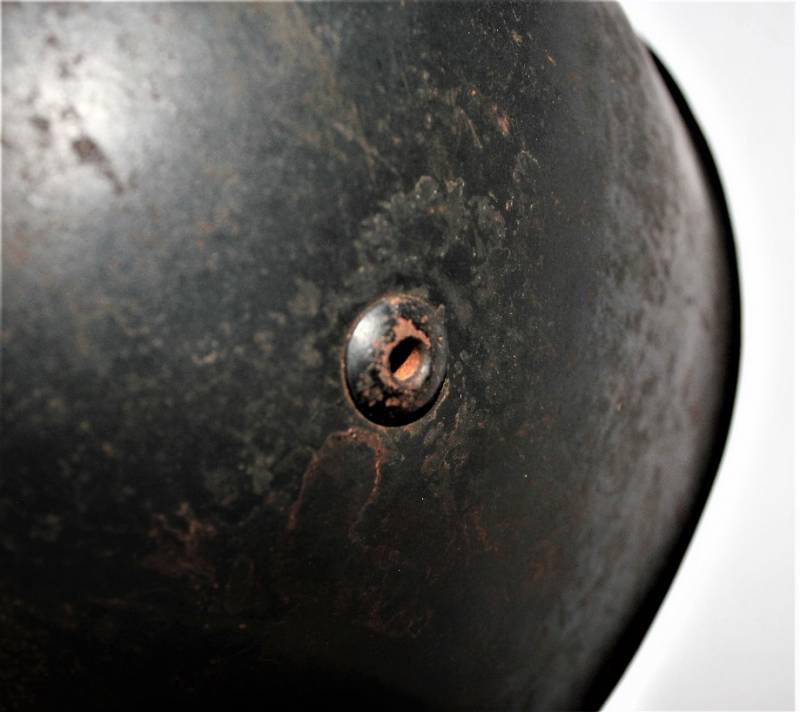 Elmetto M33 delle Brigate Nere del reparto "Aldo Resega" di Milano, ottime condizioni con patina del tempo e dellŽuso, in colorazione nero allŽ80%, con fregio dipinto a mano, non restaurato o riparato, interno in pelle in ottime condizioni con pelle sana, mancante del sottogola, ferro marcato con numero di lotto (M11) taglia 57. Originale 100% WWII periodo.