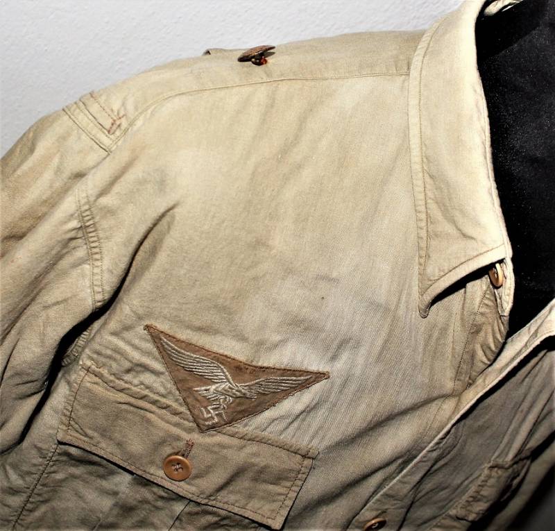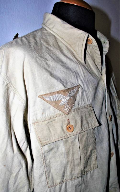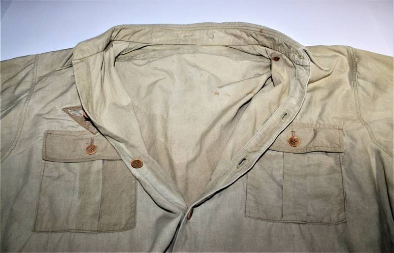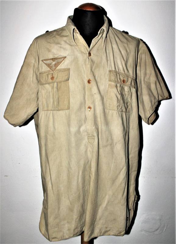 Luftwaffe tropical shirt born in yellow cotton, short-sleeved model, complete with vintage machine-stitched eagle, good condition but used, no holes or tears and perfect seams, only a few small rust spots (see photo), on the collar you can see the markings of the year and the size. Large size approx 50. Original 100% WWII period.