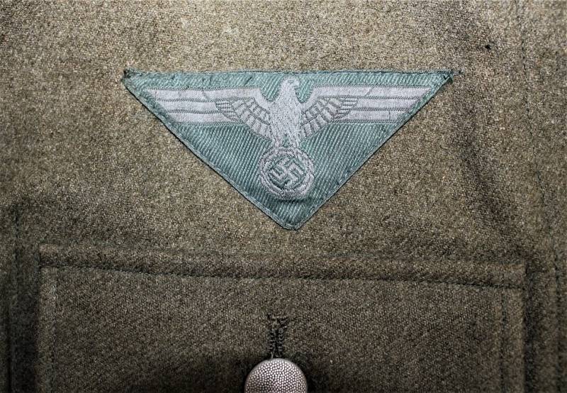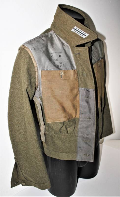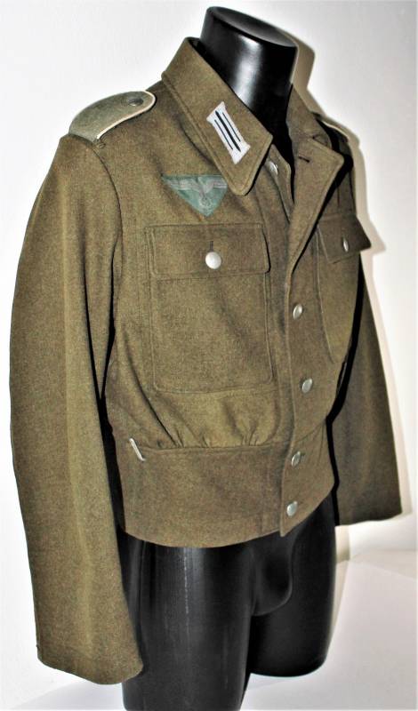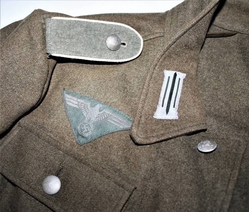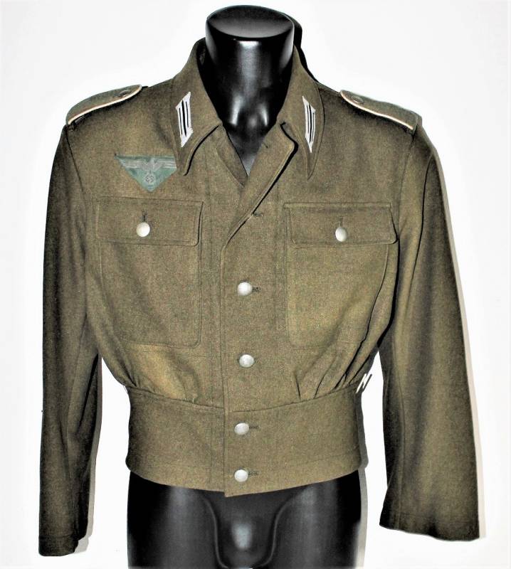 Superb AM NCO jacket mod. 44 of the WH in excellent condition, almost like new, only very light patina of use, complete with all the insignas mounted in the era, not restored or repaired, without holes or tears and with perfect seams, white waffenfarbe infantry, internally marked with RBN n .. and size numbers. Great size for mannequin or bust, EU size around 48-50.