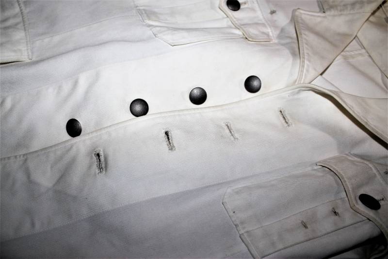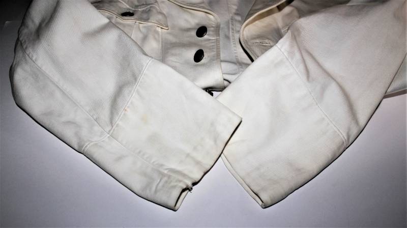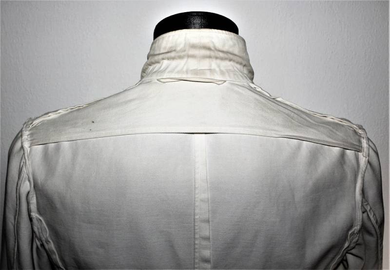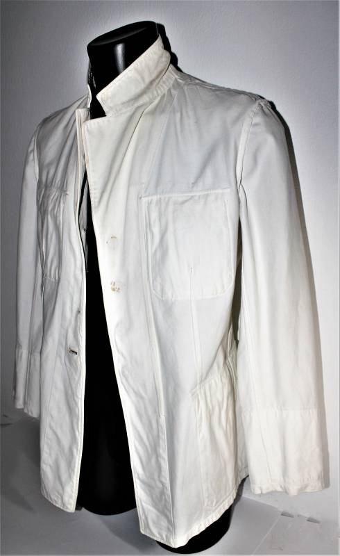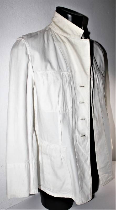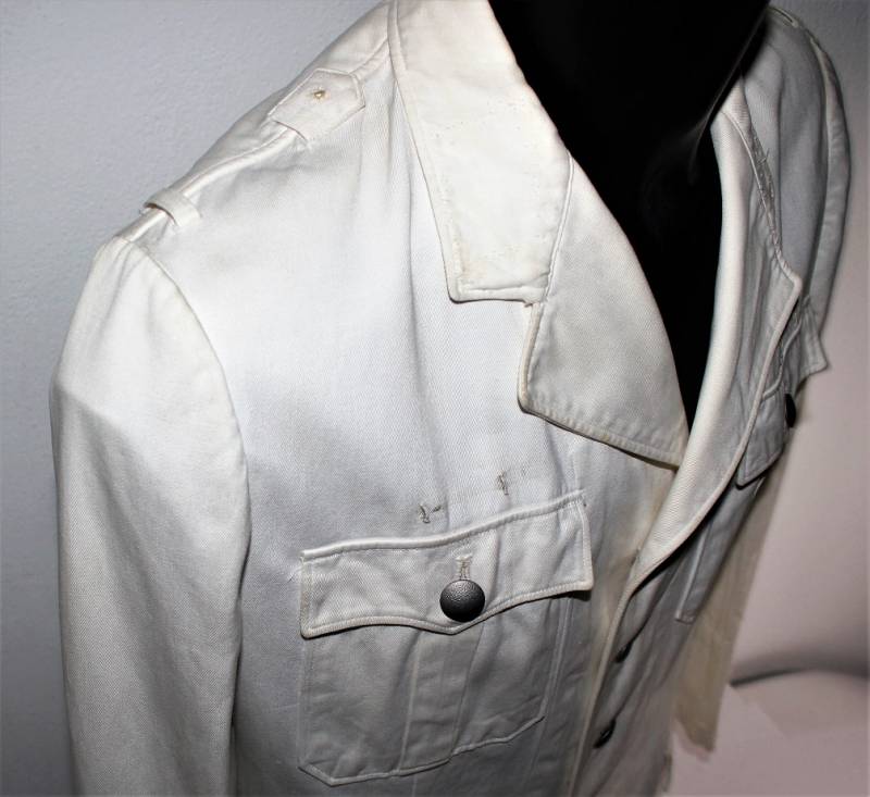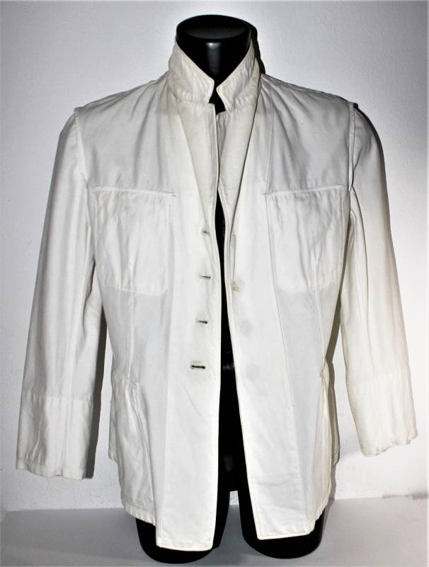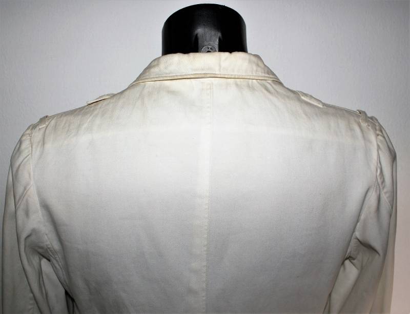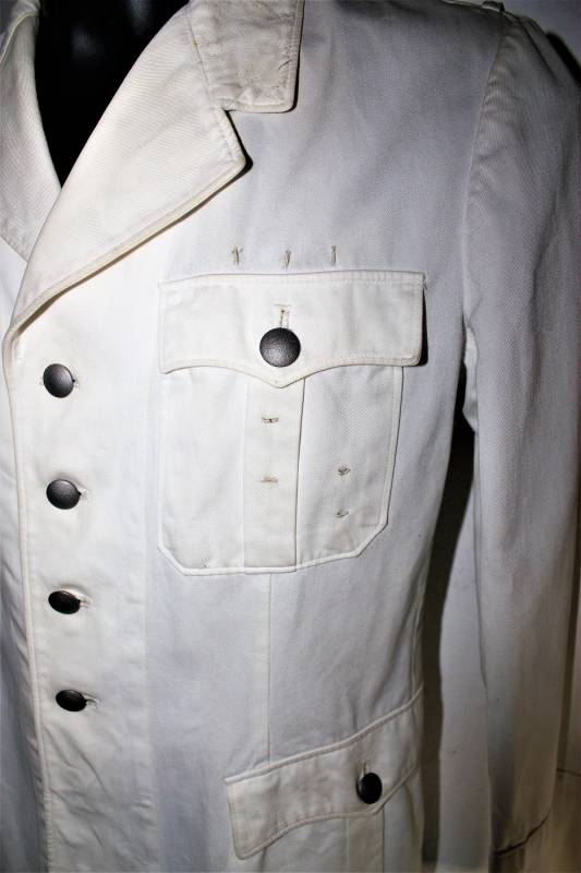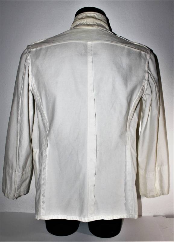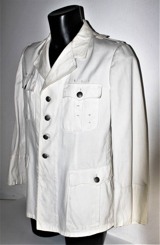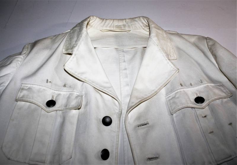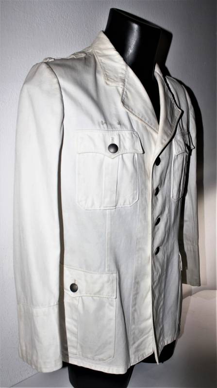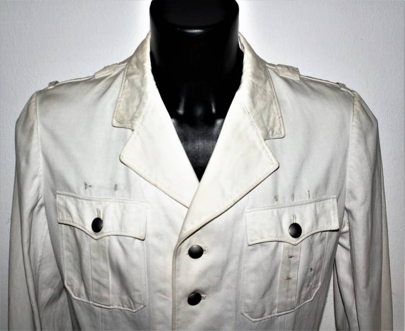 Luftwaffe Officer summer jacket born in white cotton, very good condition, missing all the insigna but not repaired or restored, no holes or tears, perfect seams. Size about 48.