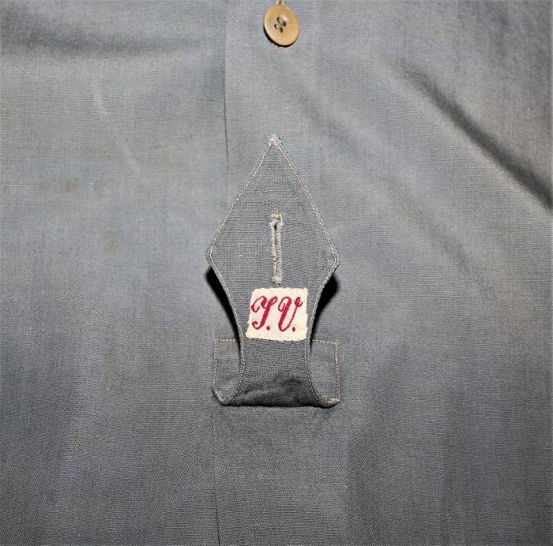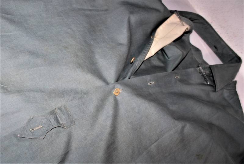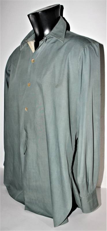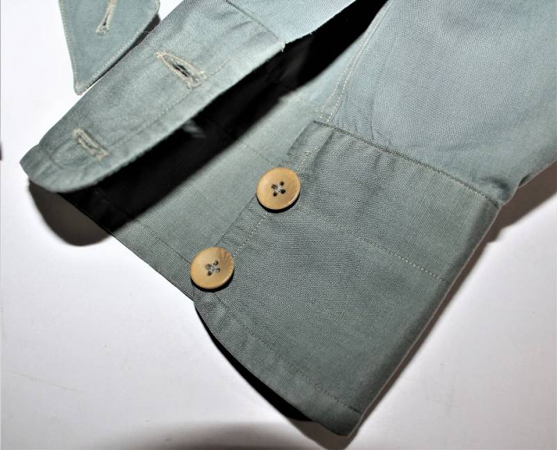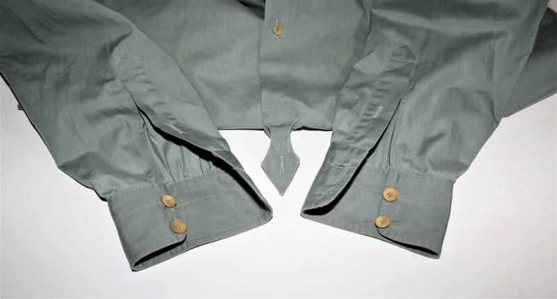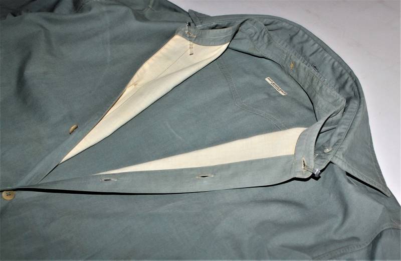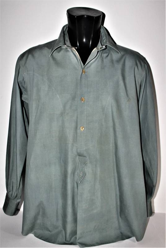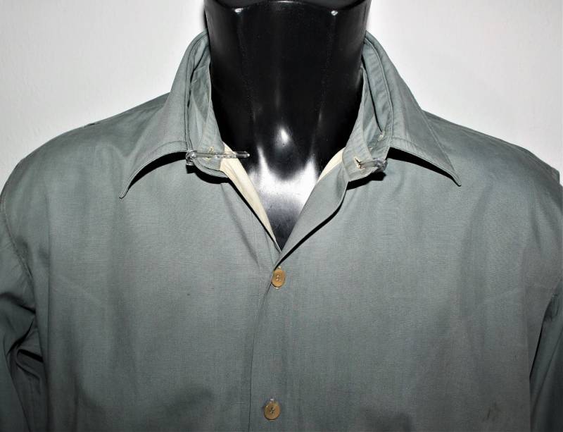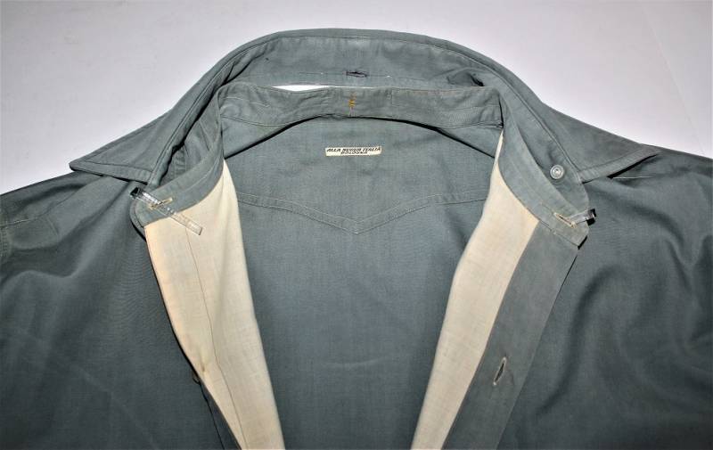 Royal Army Officer´s shirt in perfect condition almost like new, born in gray-blue cotton, complete with its collar saver, not restored or repaired and without holes or tears. Inside the fabric label with the name of the tailor´s shop.