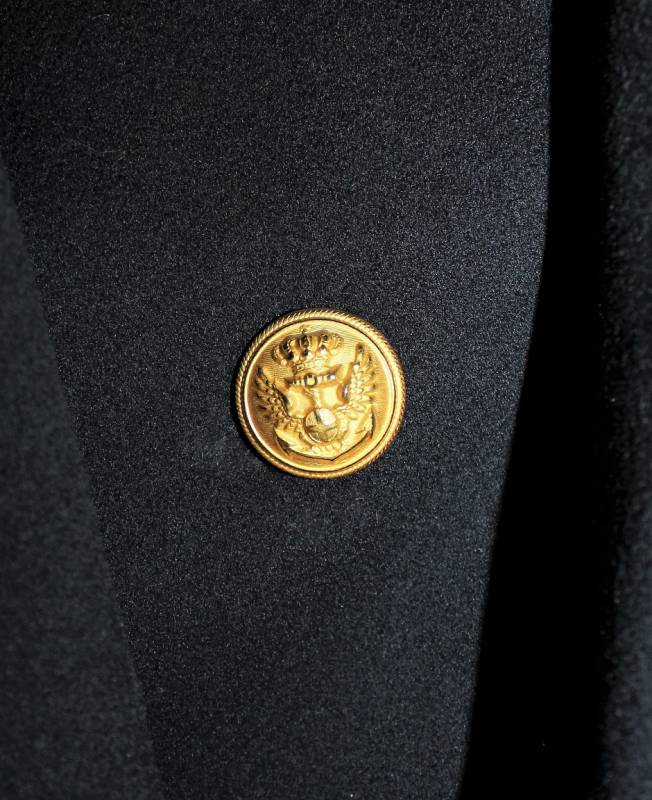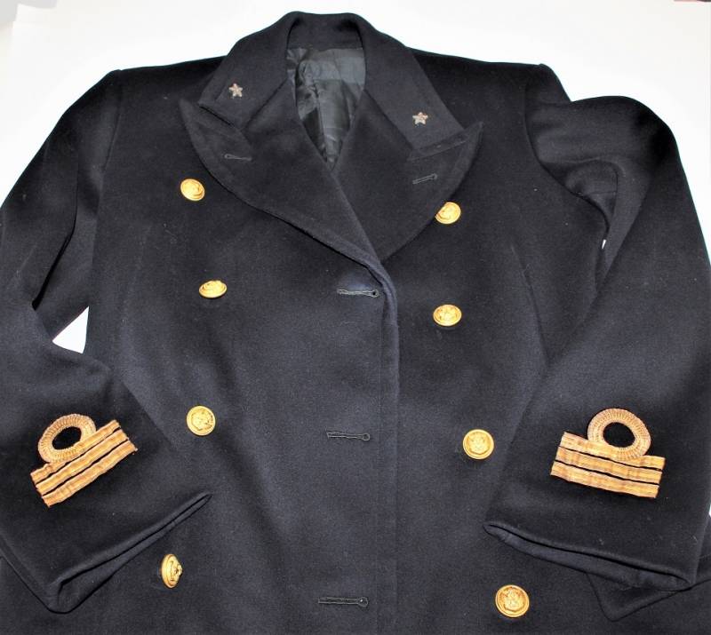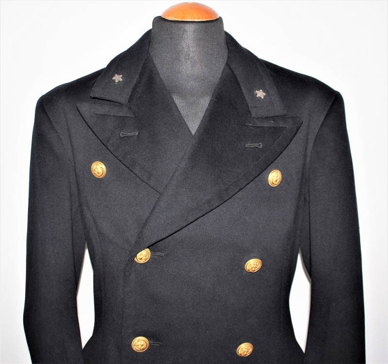 Superb officer coat of the Italian Royal Navy in the rank of Lieutenant in excellent condition, born in the elegant blue woolen cloth, complete in all its parts, not restored or repaired and without holes and tears, perfect seams.