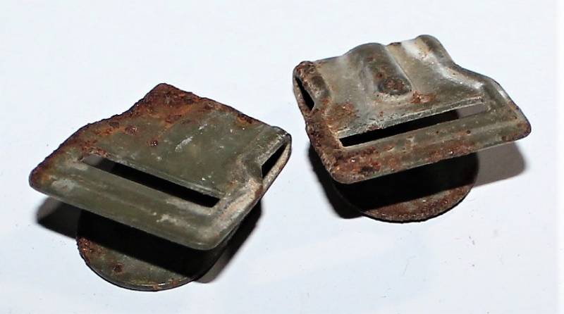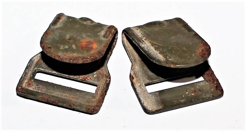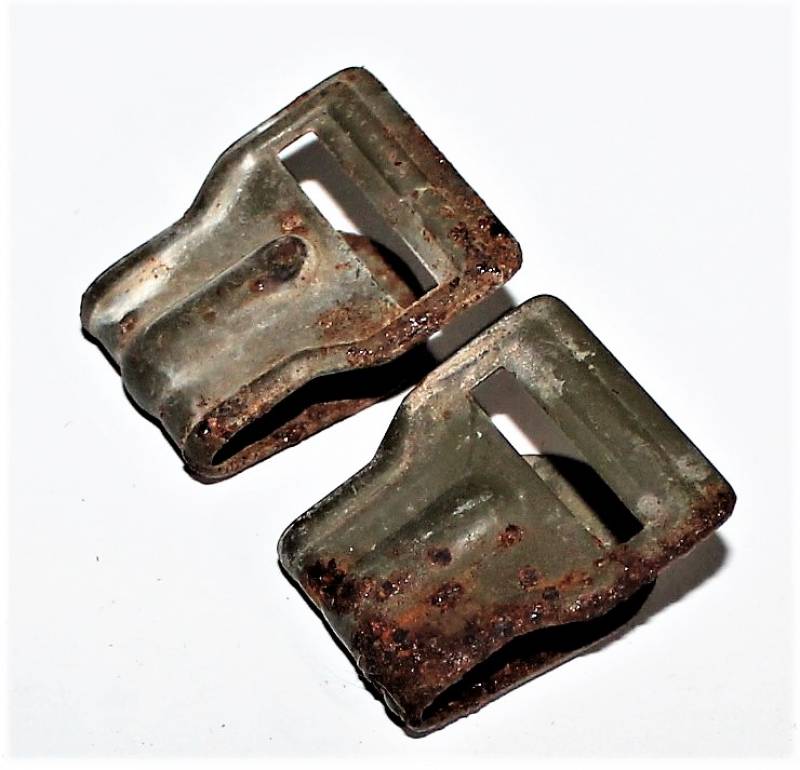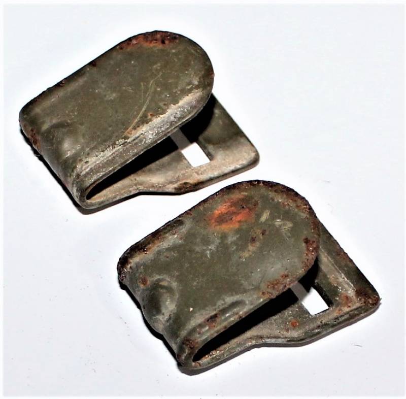 Pair of anti-gas mask hooks in used conditions. Original 100% WWII period.