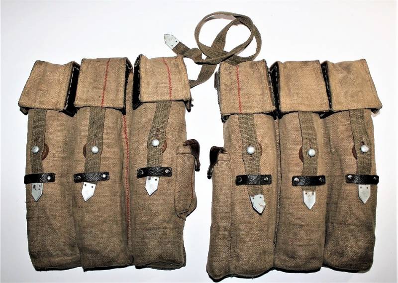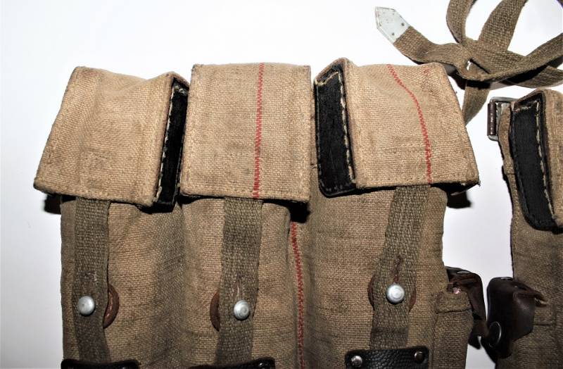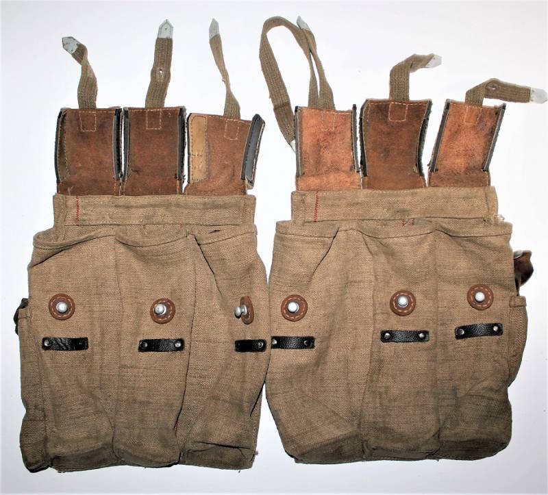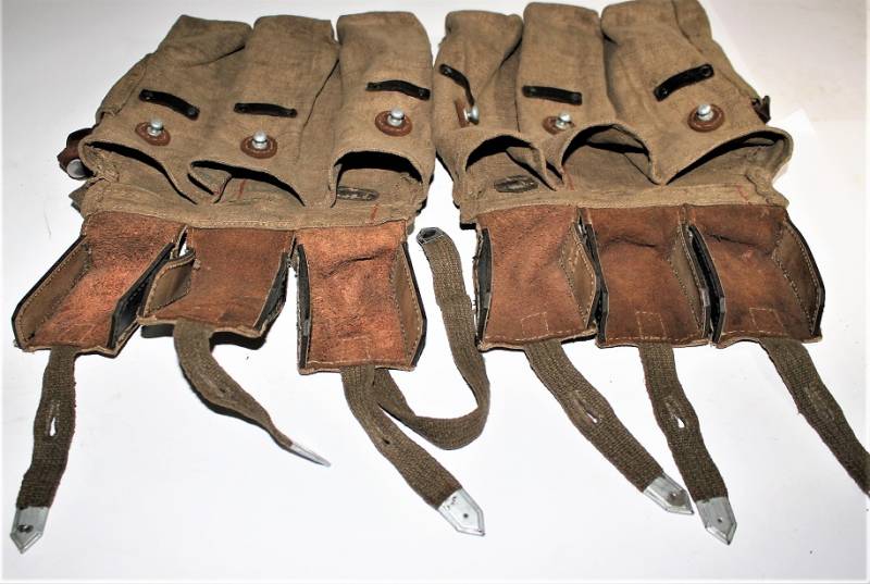 Pair of magazine pouches for MP44-STG44 in excellent condition, complete in all its parts, not restaured or repaired, without holes or tears, perfect seams, marked on the back with manufacturer code, year 1944 and waffenamt, closing straps also they are marked, all with patina of time, maybe never used. Original 100% WWII period.