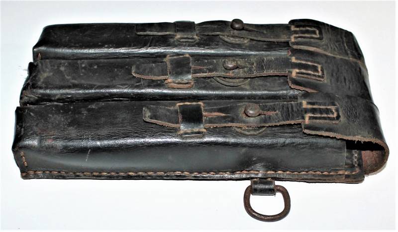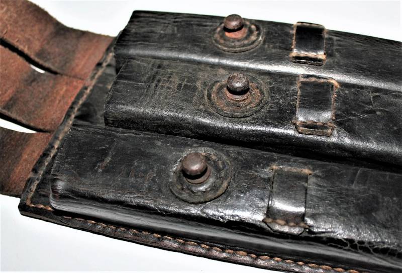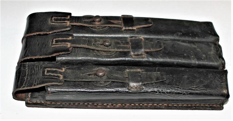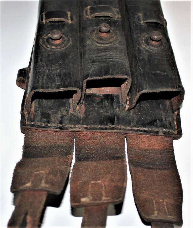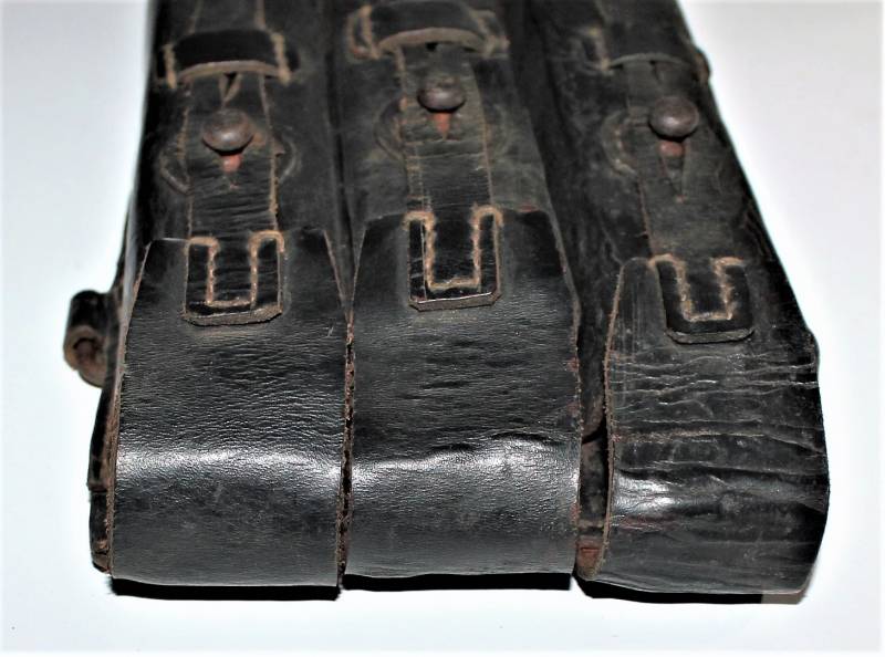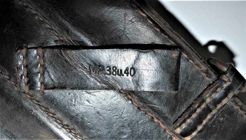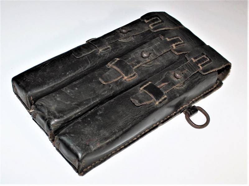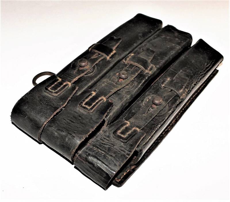 Leather magazine pouches of the 1st type for MP38-MP40, right side, discreet condition, complete in all its parts, with signs of time and use, leather still in good condition discreetly soft, perfect seams, marked on the back "MP38 u 40", waffenamt, manufacturer code and date 1941. Original 100% WWII period.