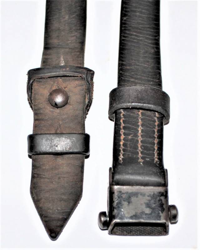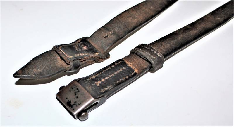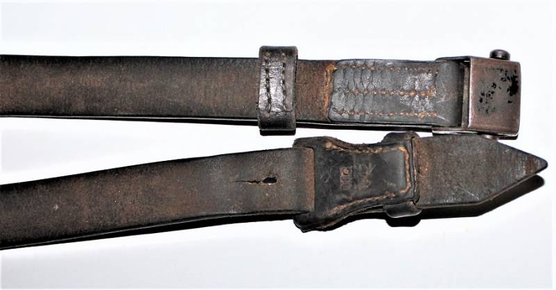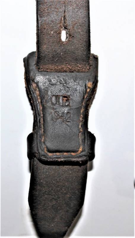 Carrying strap for rifle Mauser mod. K98, used but in good condition, with patina of time and use, fairly soft and not damaged leather, marked with manufacturer code, date 1942 and waffenamt. Original 100% WWII period.