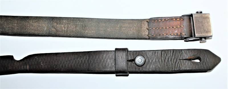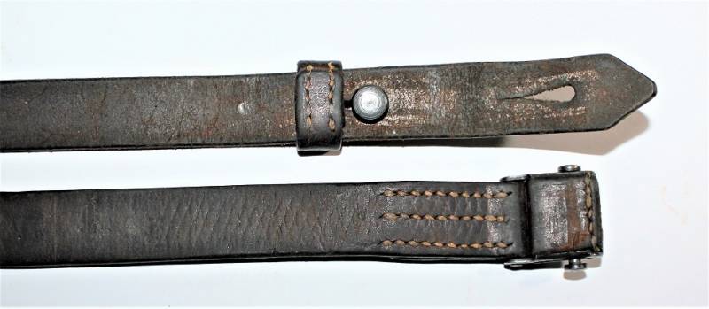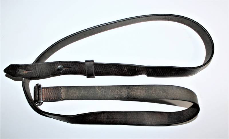 Carrying strap for MP38-40 submachine gun in good condition, complete in all its parts, with patina of time and use, still soft leather, only a small lesion around the buttonholes (see photo), perfect seams, marked with MP38 u40 and waffenamt. . 100% original WWII period.