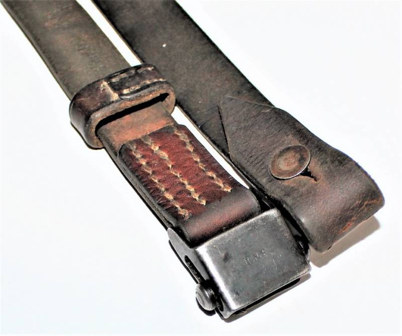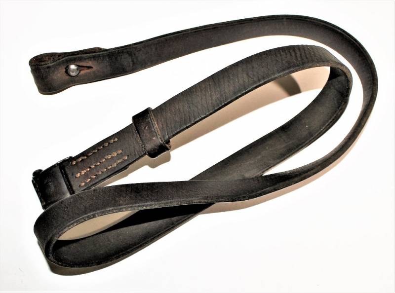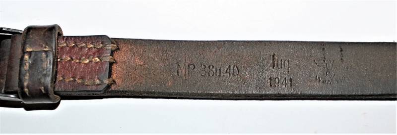 Carrying strap for MP38-40 submachine gun, good condition, little used, the brown color and the knurling are still partially visible, complete in all its parts, only with a patina of time and use, still soft leather, perfect stitching, marked with manufacturer code, date 1941, waffenant and wording MP38u40. Original 100% WWII period.