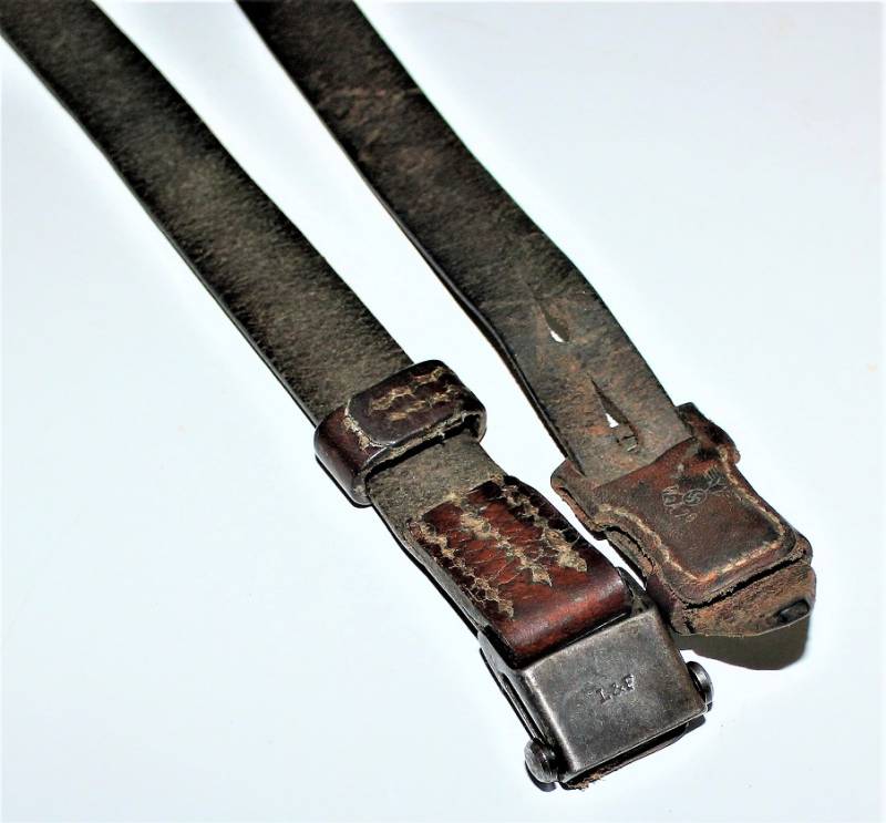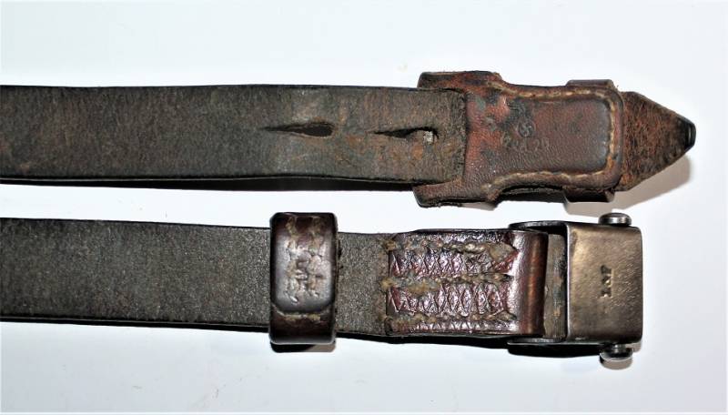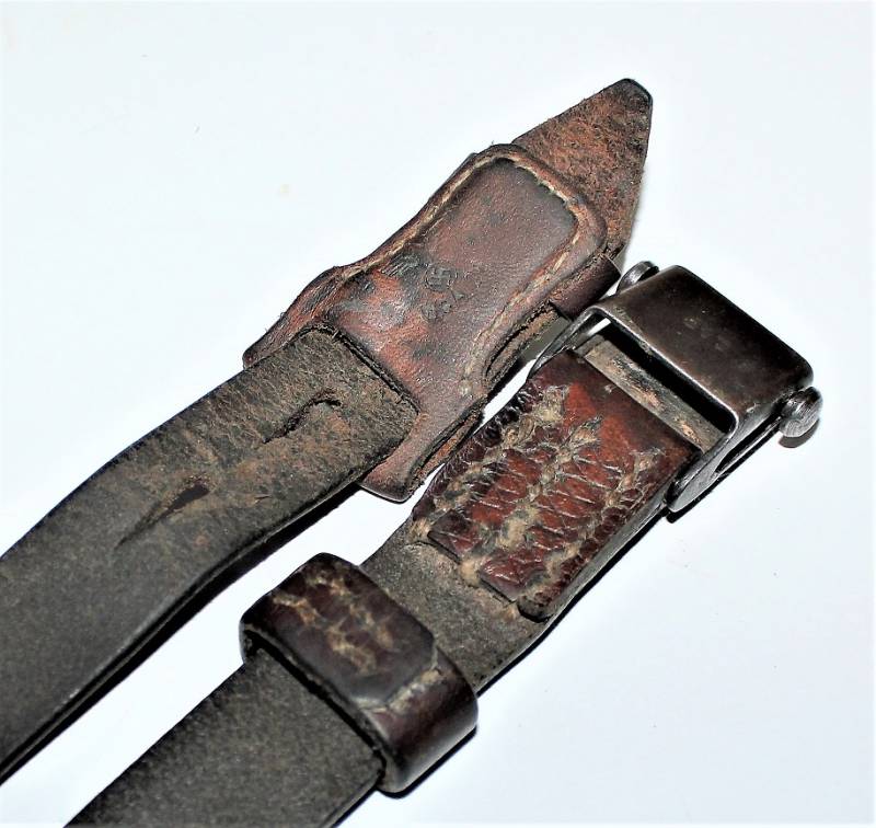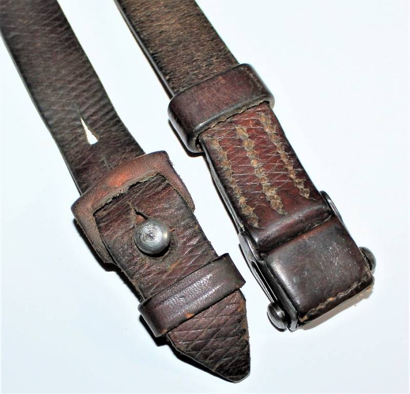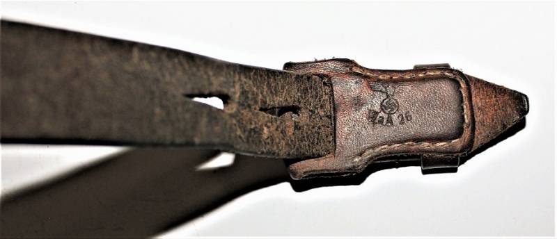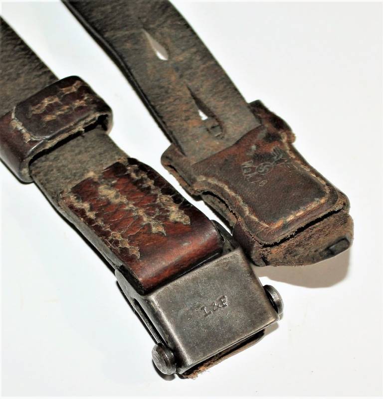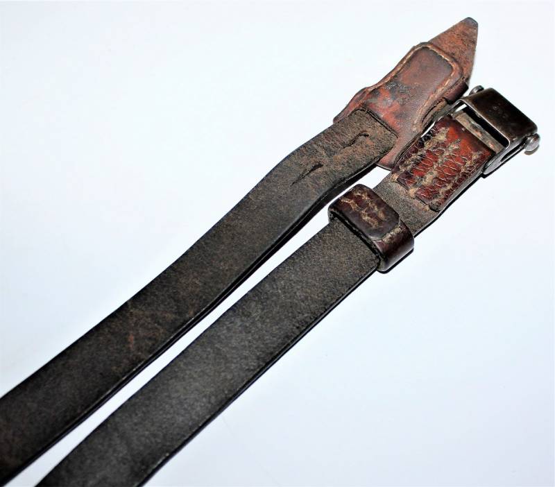 Carrying strap for mauser K98 rifle in excellent condition, complete in all its parts, not restored or repaired, leather still soft and not damaged, all its knurling can be seen very well, brown color, perfect stitching, only with a slight patina of time and use, marked on the frog with waffenamt. 100% original WWII period.