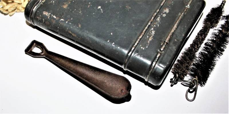 RG34 cleaning kit for K98 shotgun born in 90% gray color, good condition, with a slight patina of time and use, complete with all accessories, marked with manufacturer code and date 1943.