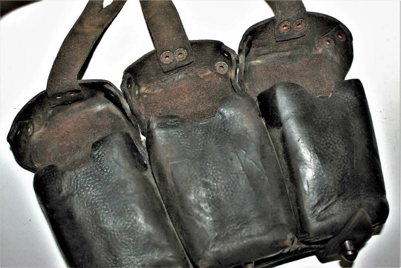 Set of ammunition pouches for K98, good condition but very used, healthy skin not damaged, complete in all its parts, with patina of time and use, marked on the back with manufacturer name and date.