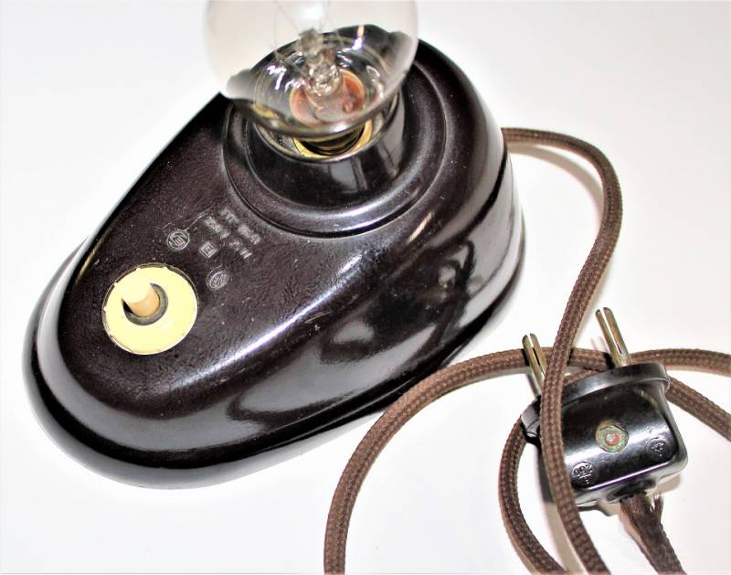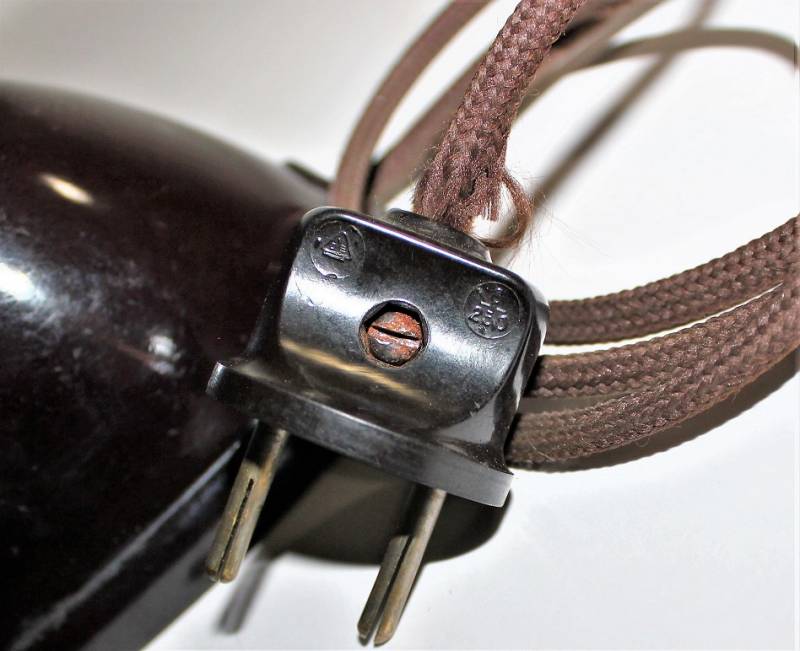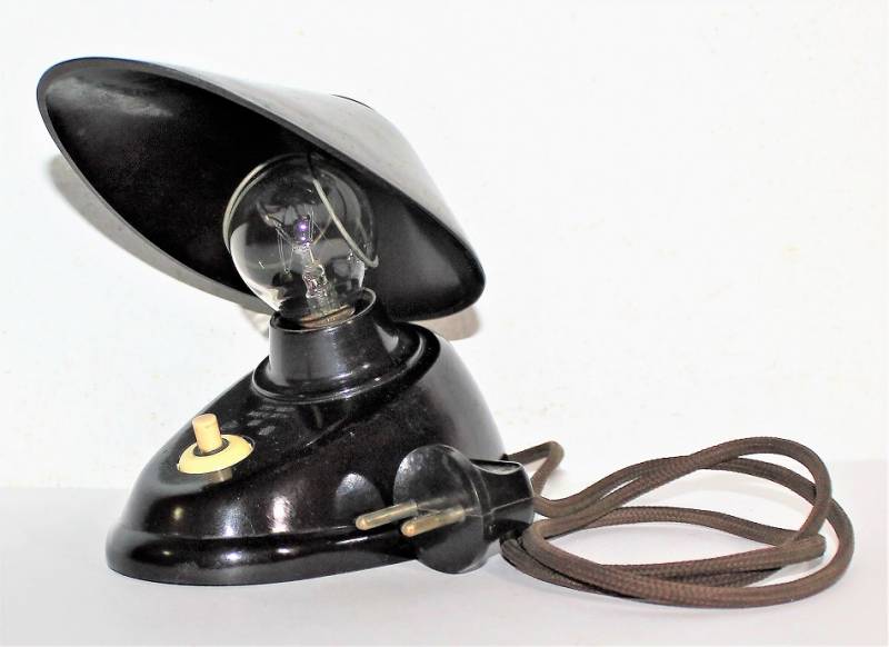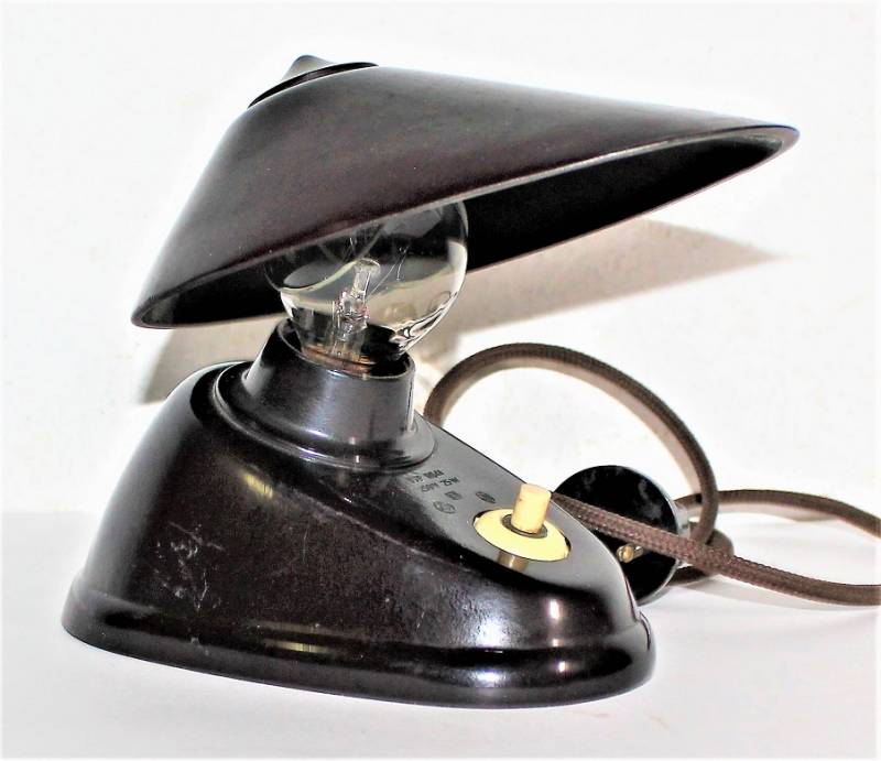 Superb red-brown bakelite SS-WH-LW office lamp in excellent condition, almost like new, complete in all its parts, perfect undamaged bakelite, fully functional, only very slight patina of time, marked with manufacturer´s marks, voltage and serial number. complete with its cable and original plug.