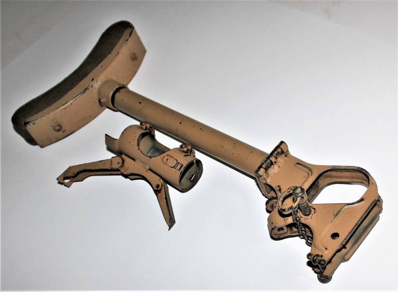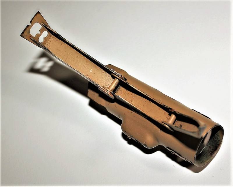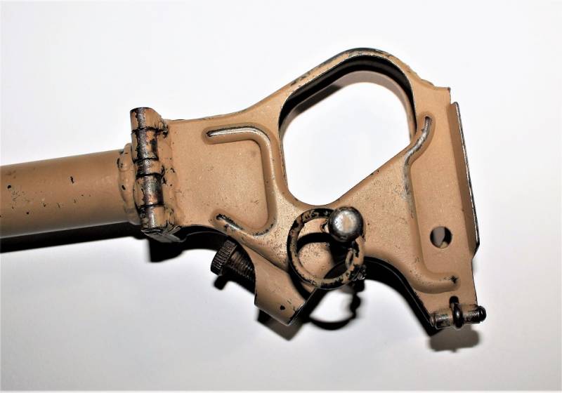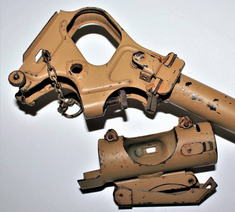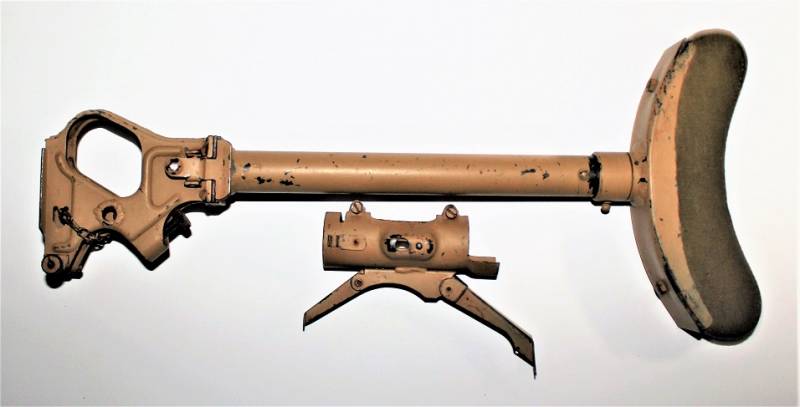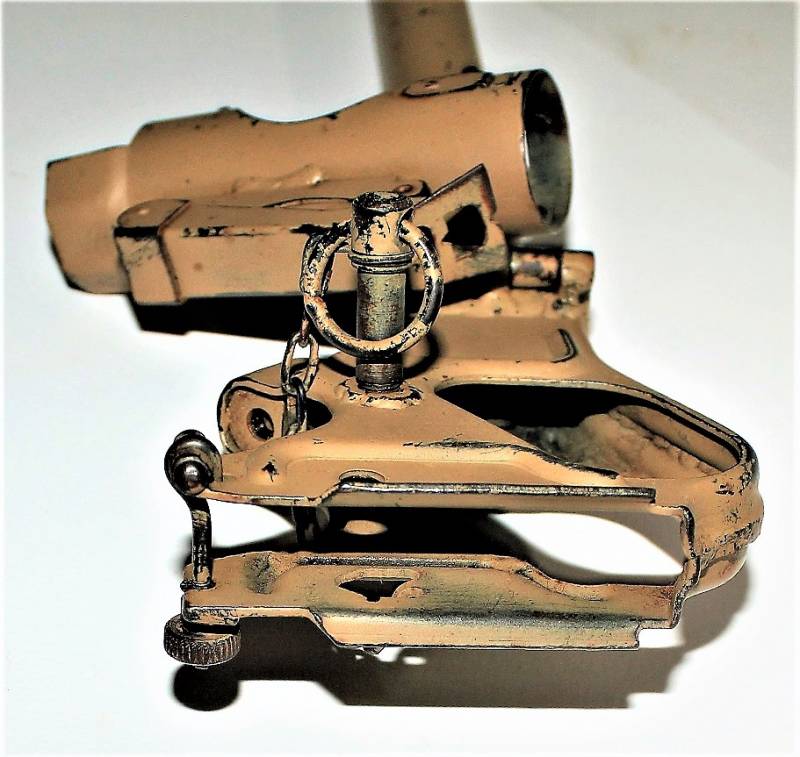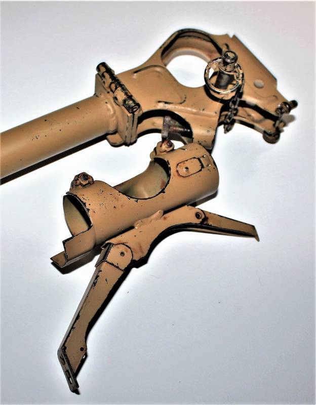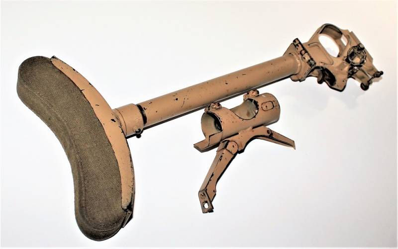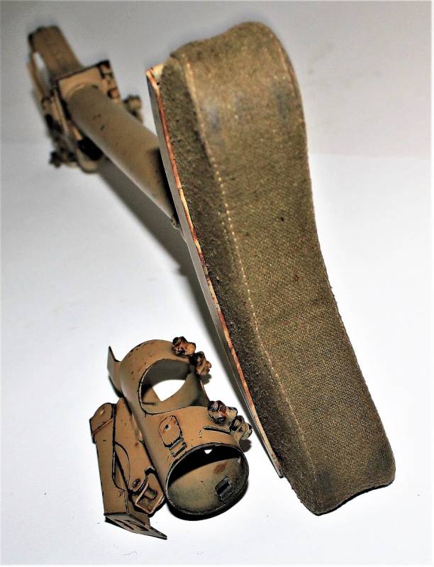 Beautiful and rare flare pistol stock with sight for "LEUCHTPISTOLE-Z" rocket launcher pistol complete with its front sight in excellent condition, complete in all its parts, not restored or repaired and fully functional, born in yellow camouflage Italian or Mediterranean front with 90% paint, only slightly patinated by time and use.