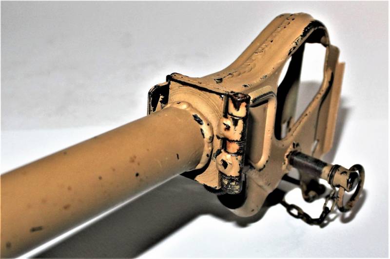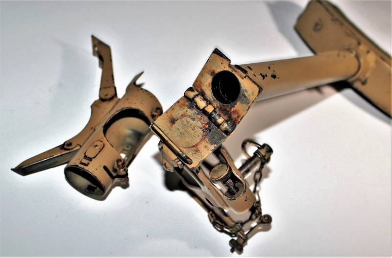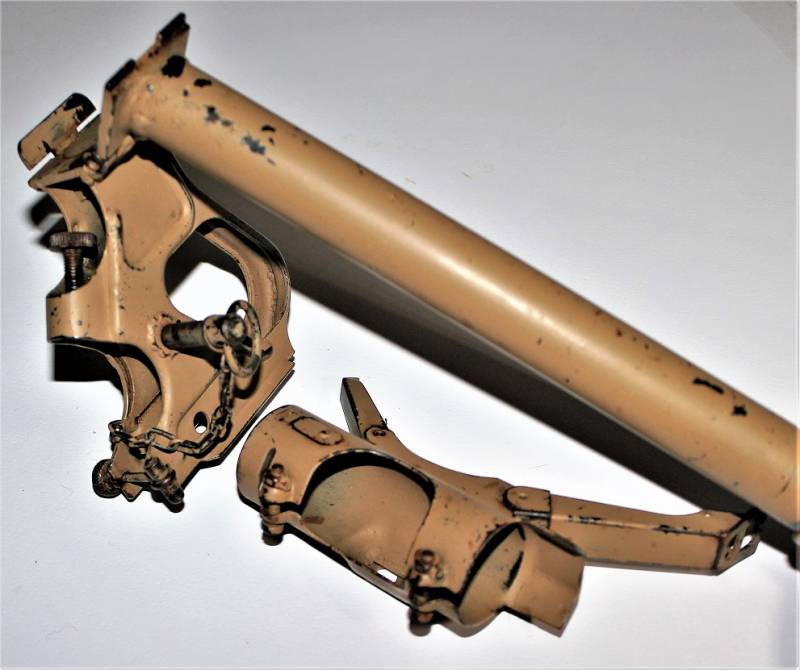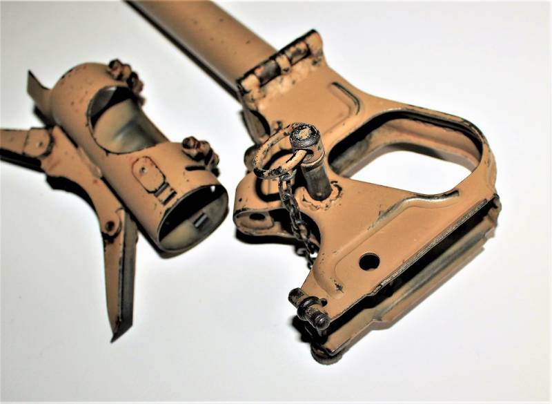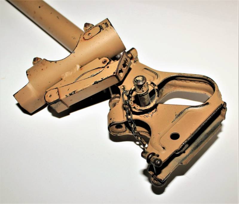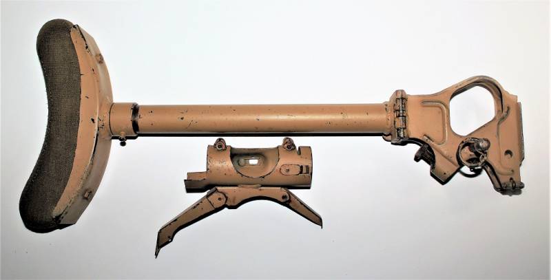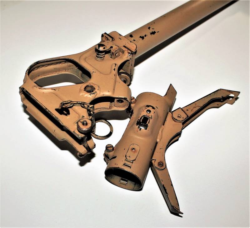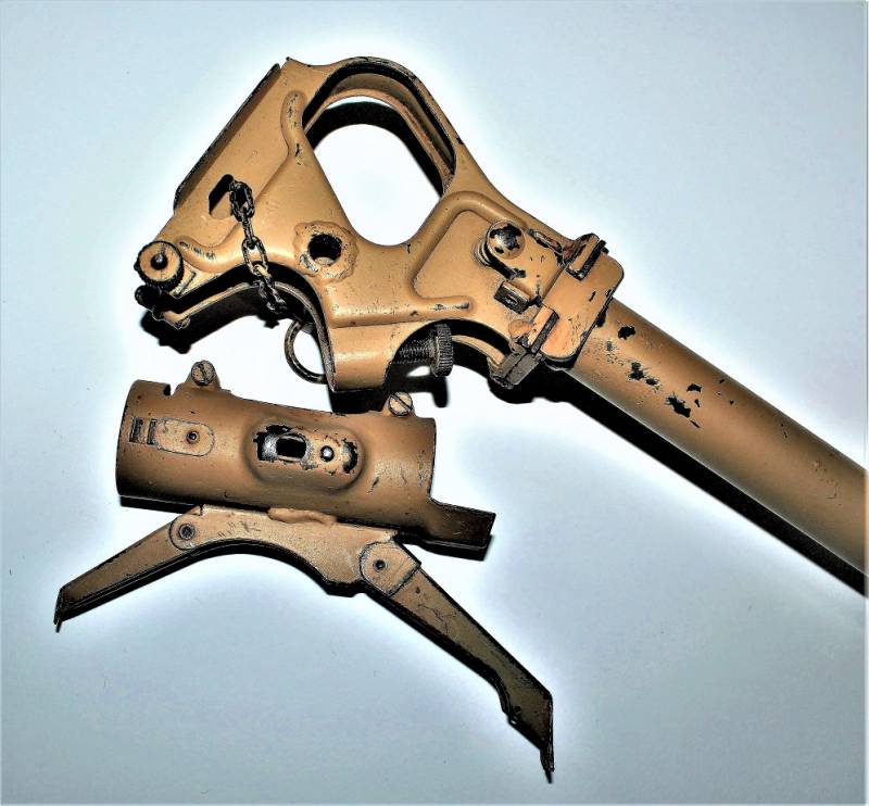 Beautiful and rare flare pistol stock with sight for "LEUCHTPISTOLE-Z" rocket launcher pistol complete with its front sight in excellent condition, complete in all its parts, not restored or repaired and fully functional, born in yellow camouflage Italian or Mediterranean front with 90% paint, only slightly patinated by time and use.