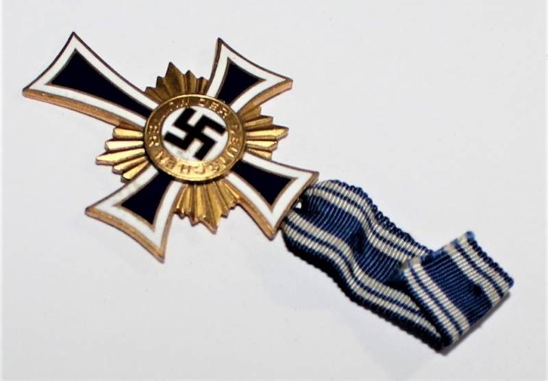 Cross of the German Mothers class in gold in wonderful condition almost like new, complete with ribbon.