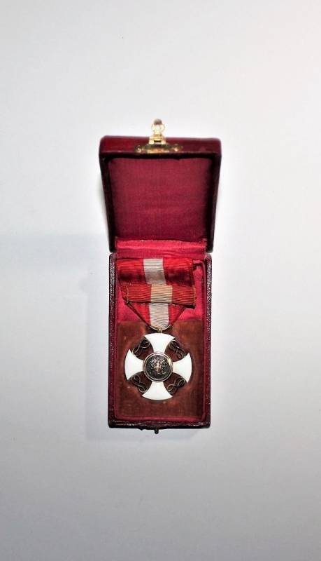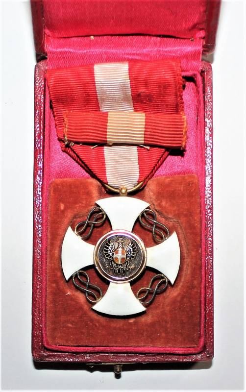 Very good decoration Vittorio Emanuele 3rd-Crown Order of Italy in box in good condition, only with light patina and oxidation of the time, the enamels and paints of the badge are perfect, the set includes medal Order Crown of Italy, ribbon and box .