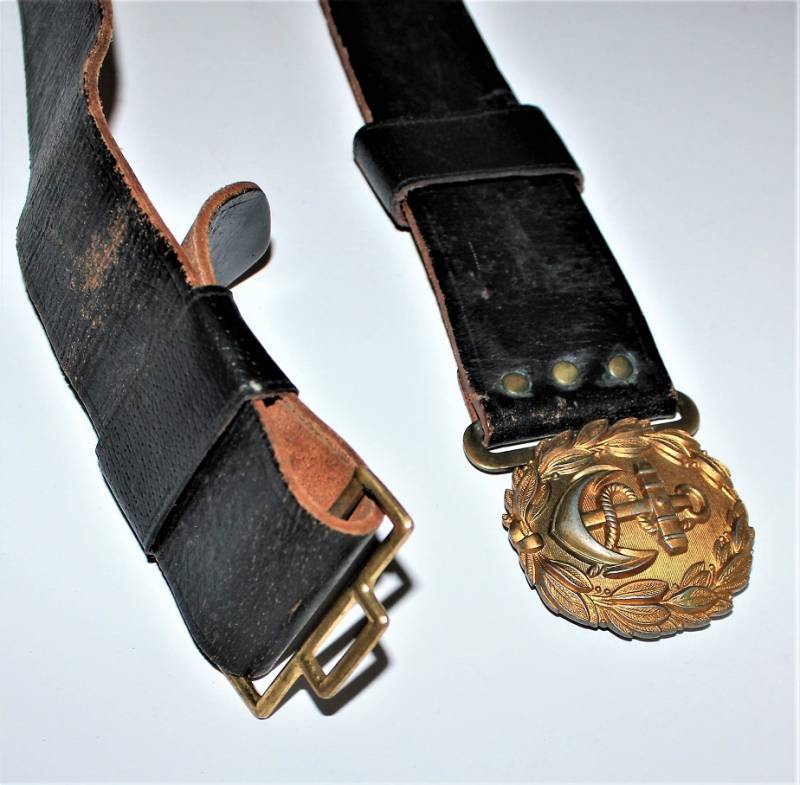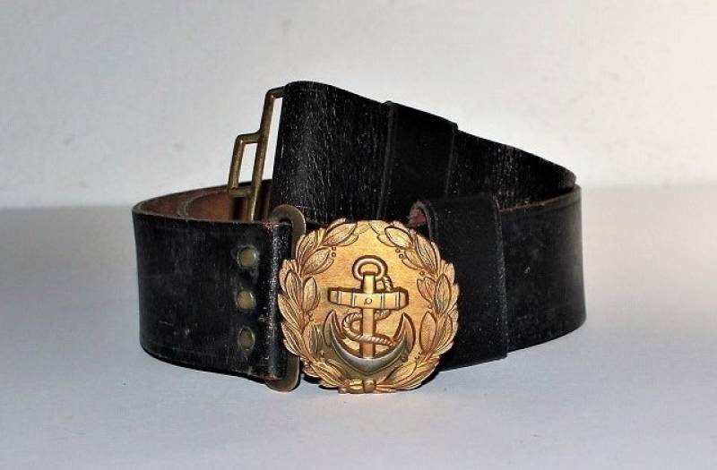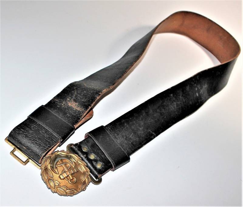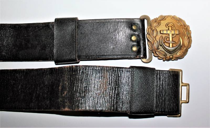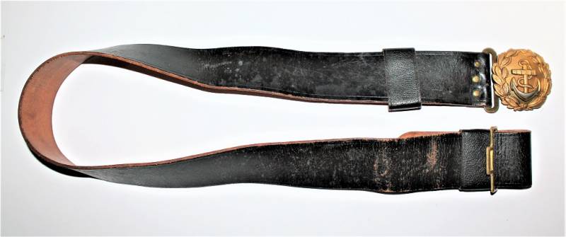KRIEGSMARINE Officer belt and buckle in excellent condition and complete in all its parts only with a slight patina of time and use, the leather is in excellent condition, very soft and complete with loops, the golden buckle is marked with the codes of the manufacturer.