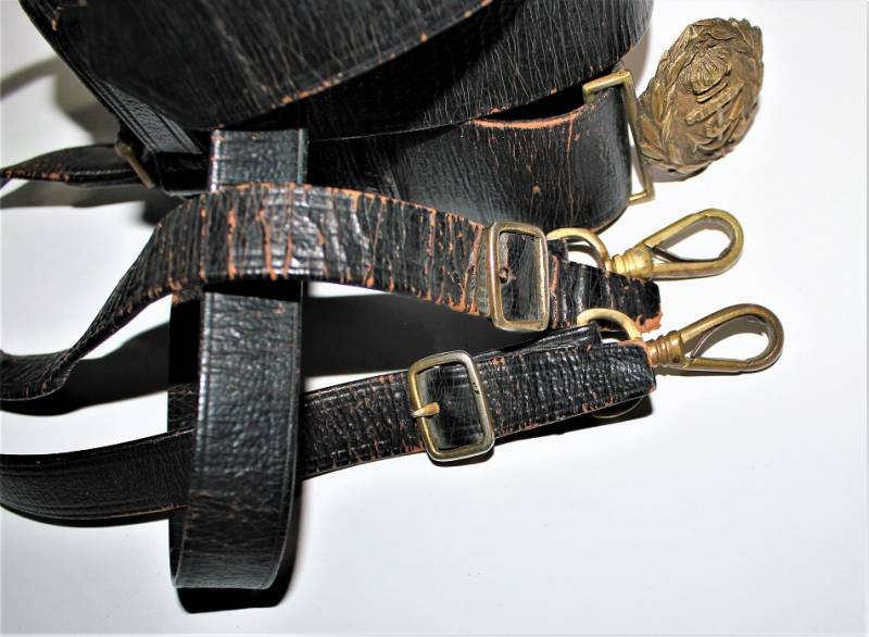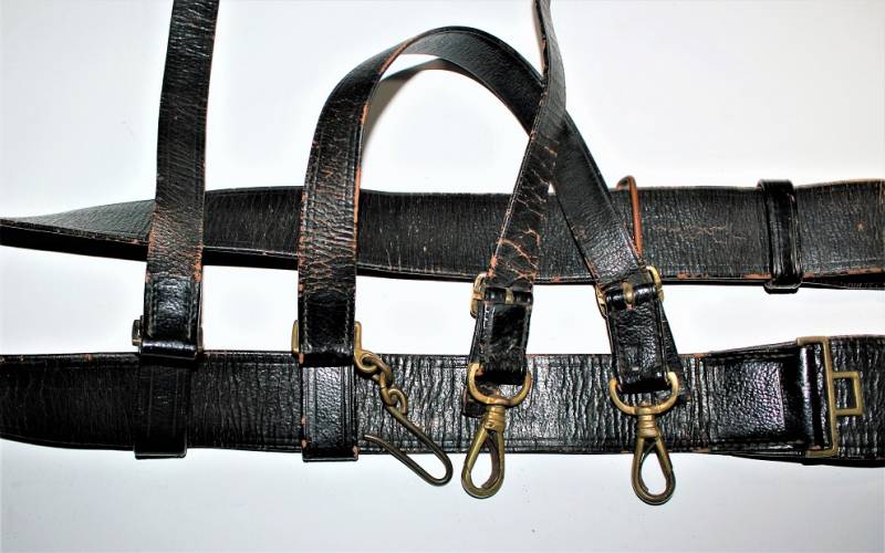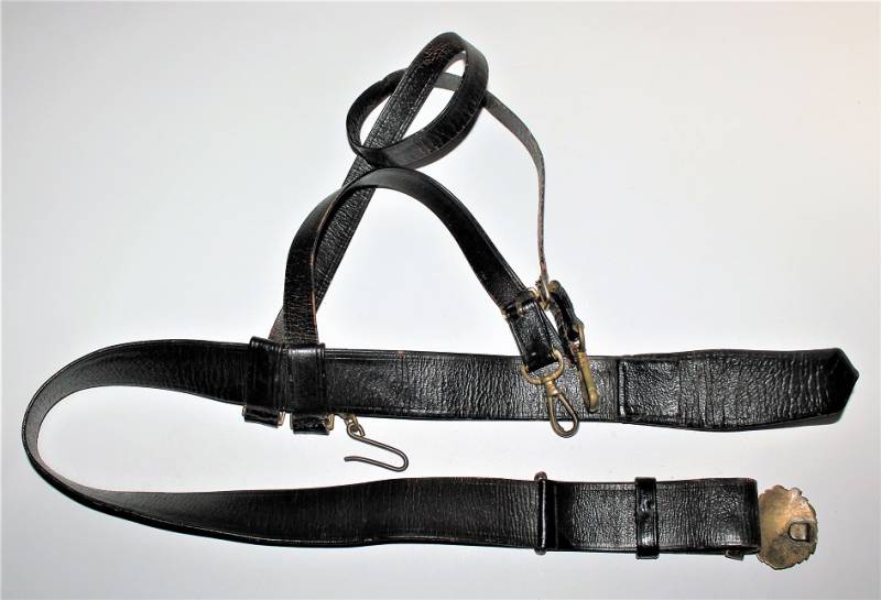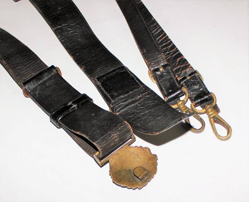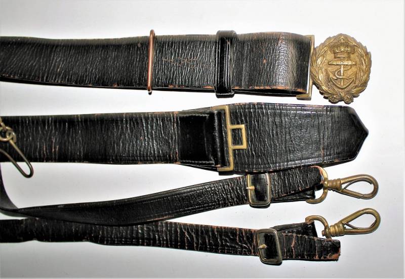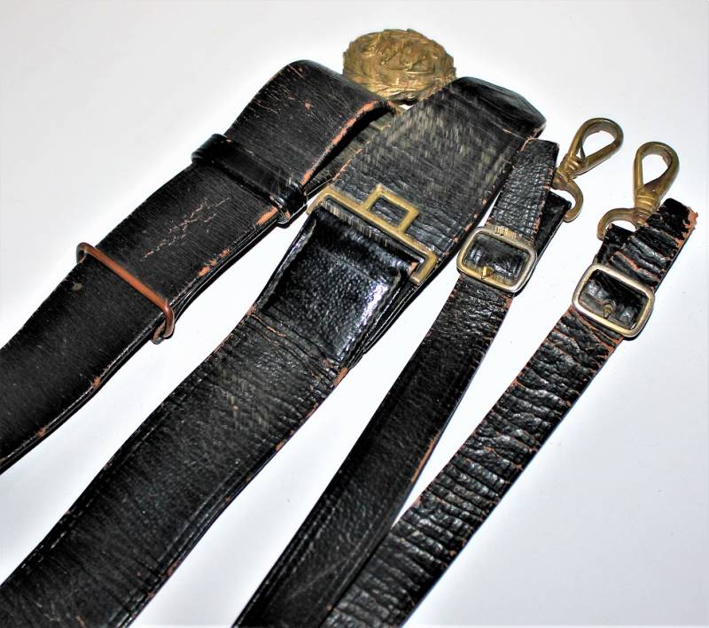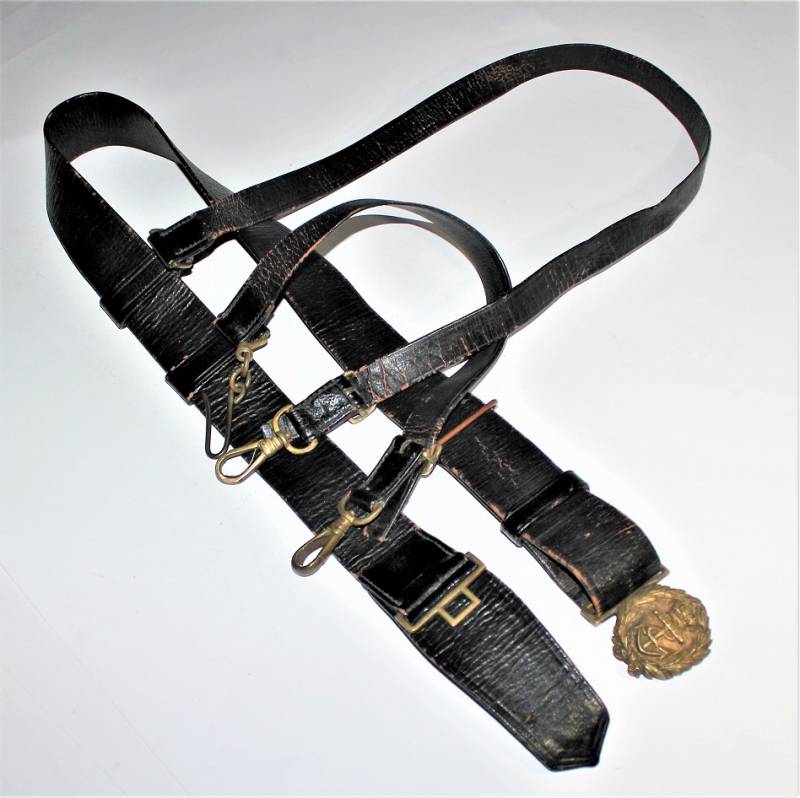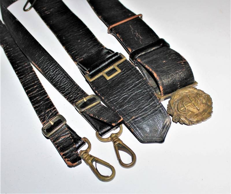 Italian Navy Officer´s belt and buckle complete with shoulder straps in good condition, not restored or repaired, skin not damaged, all only with patina of time and use, brass metal harnesses.