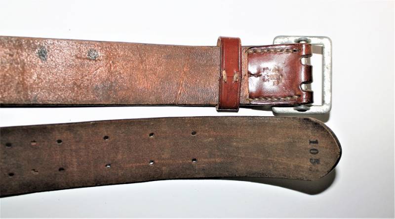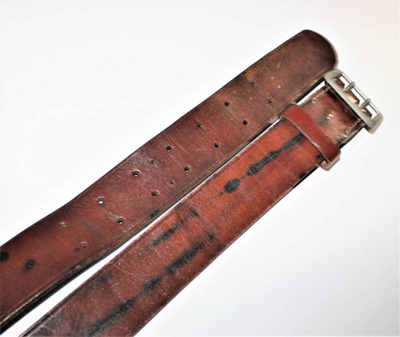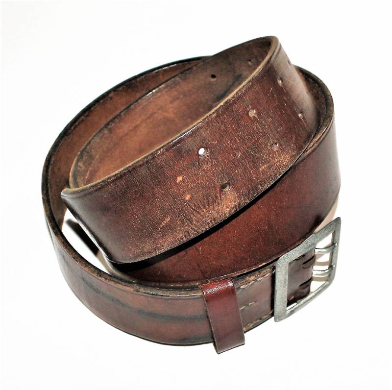 WH-LW-SS Officer belt in brown leather, height 40 cm, length 105 cm, leather and seams in excellent condition, not restored or repaired, with very light patina of time and use, complete with loop.