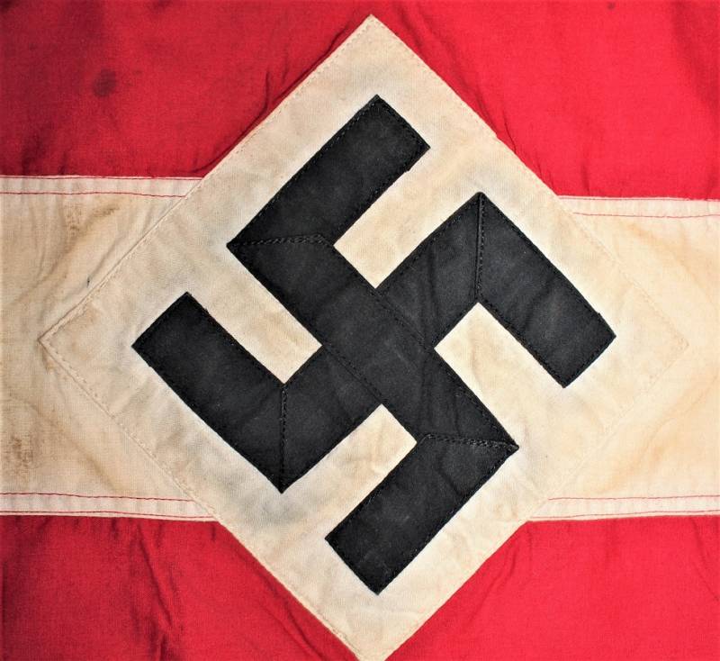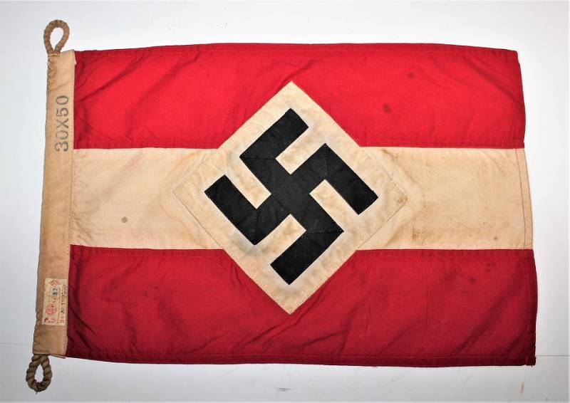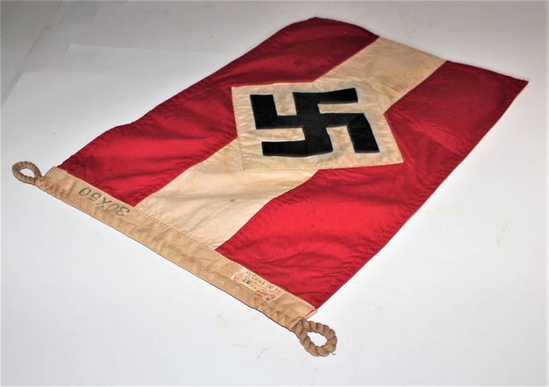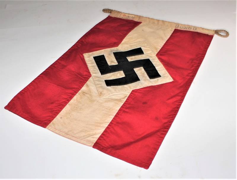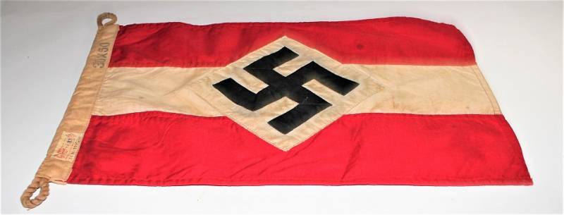 Banner-flag of the HITLERJUGEND in very good condition, patinated by time, without holes or tears and not restored, size 30x50 with label of acceptance of H.J. Original 100% WWII period.