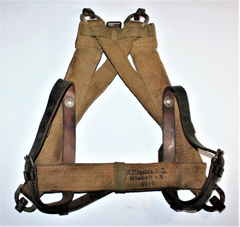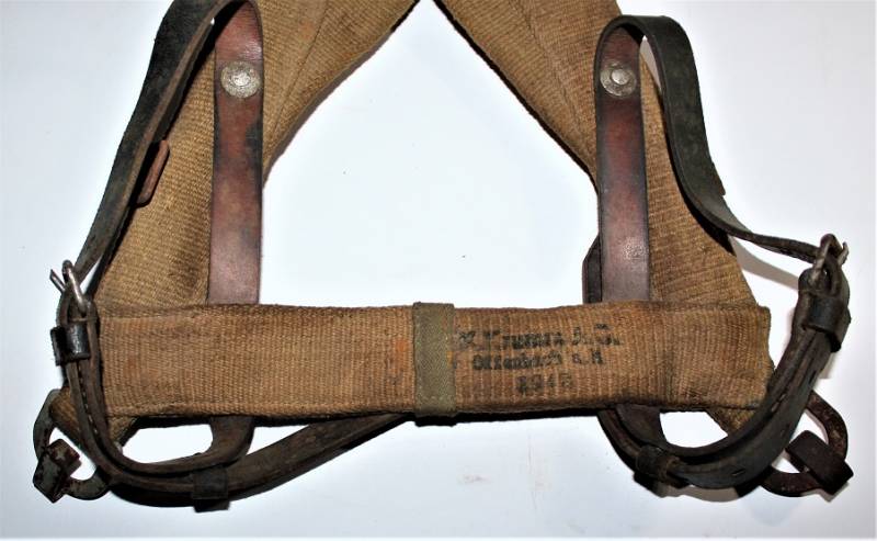 Beautiful reproduction of A canas frame combat pack with signs of wear, built with original period materials, marked with manufacturer and date.