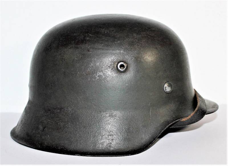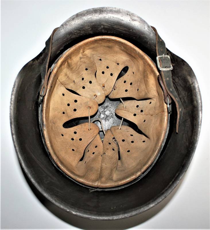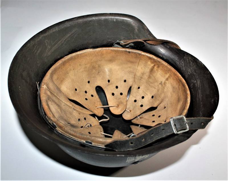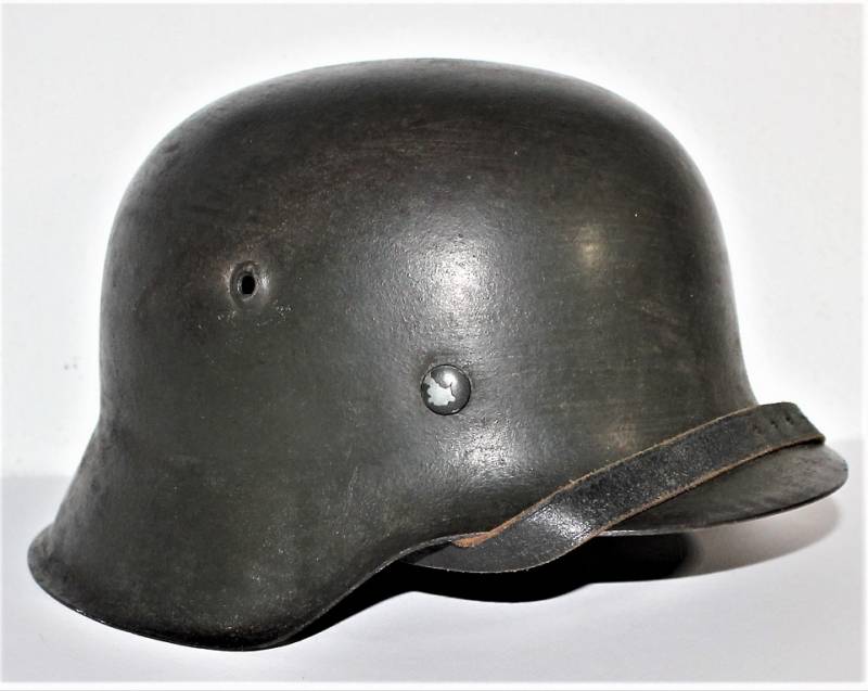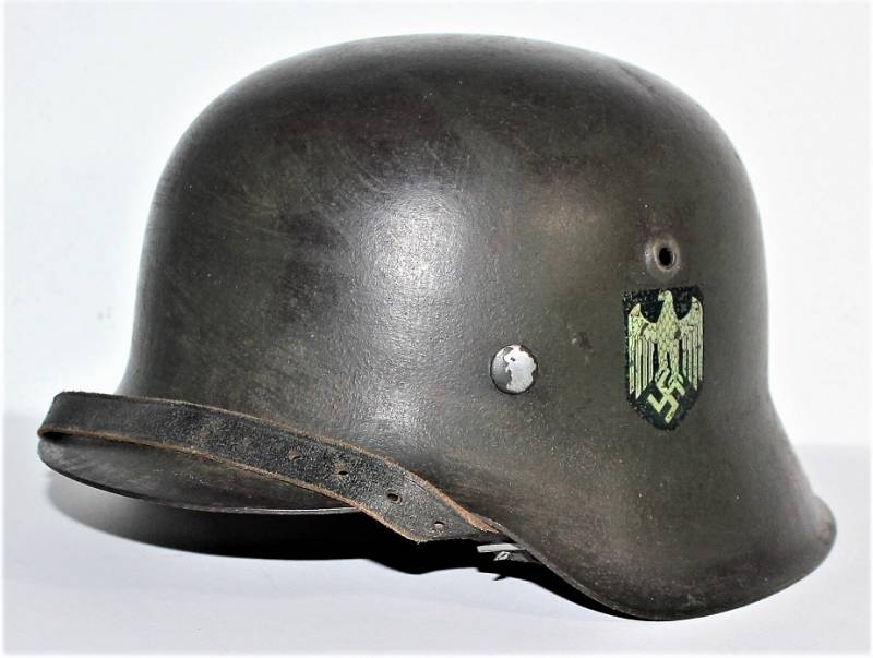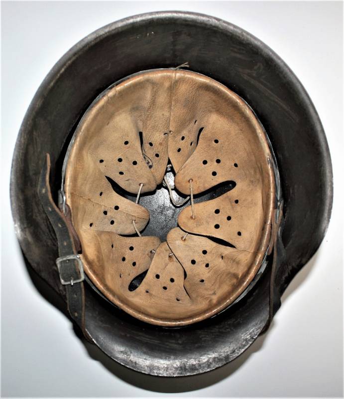 Mod.42 helmet of the WH monodekal in excellent condition complete in all its parts, not restored or repaired and never disassembled. Feldgrau varnish with on a dark brown varnish for 90% for camouflage, decal slightly patinated by time at 90%, liner and chin strap never disassembled, with leather in excellent condition, not damaged, excellent chinstrap with name of the manufacturer. Iron marked with code manufacturer and size 64 and serial number, leather size 57. Original 100% WWII period.
