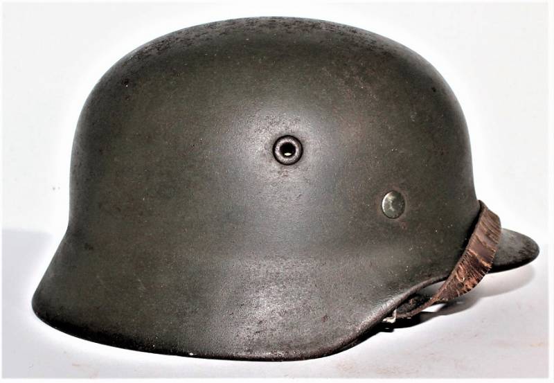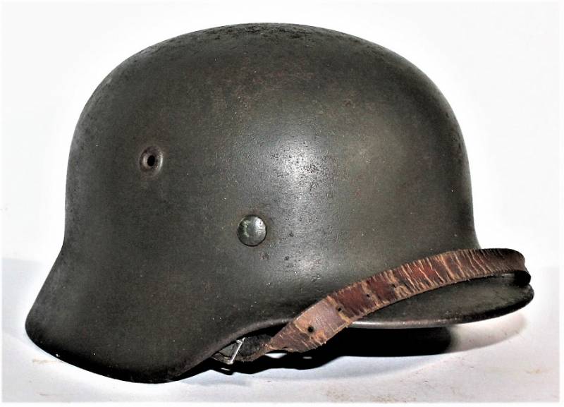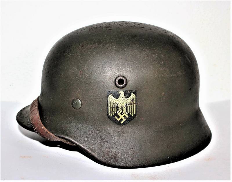 Helmet M40 monodekal WH in excellent condition, not restored or repaired, complete in all its parts, with liner and chinstrap never disassembled, all with light patina of time and use, green paint feldgrau wrinkled 85%, also patinated decal 80%, leather of the liner in very good condition still soft and not damaged, marked on the iron with lot number and code of the manufacturer Q64, chinstrap marked with the name of the manufacturer and date. On the inner shell of the helmet you can see the oval stamp of the manufacturer. Size leather 56. Original 100% WWII period.