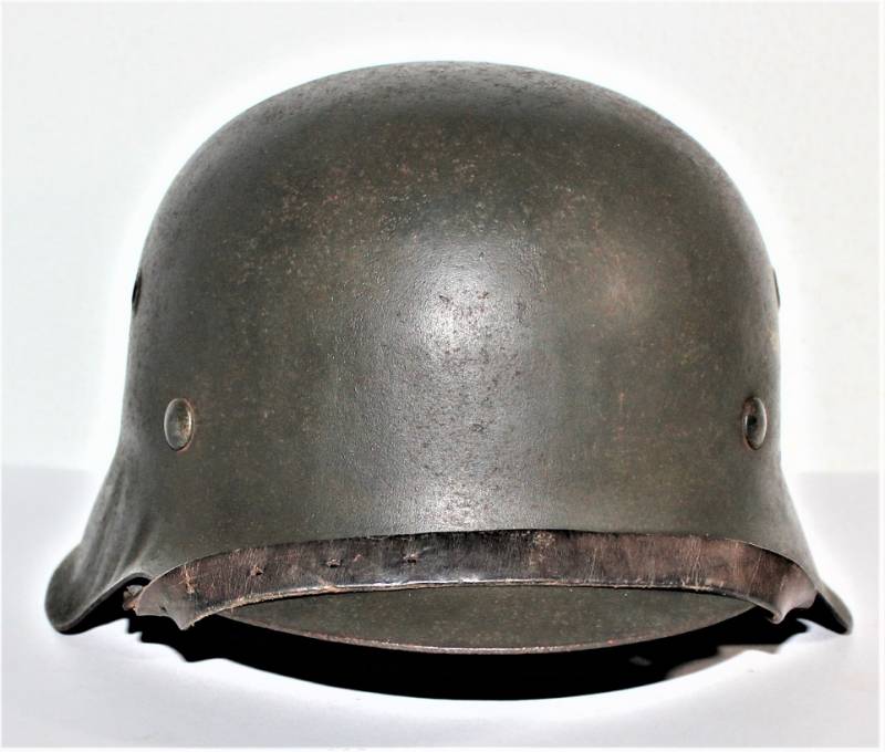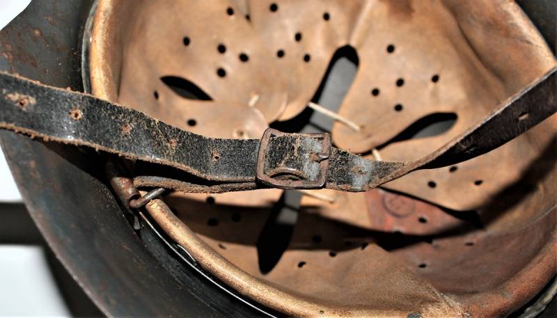 Beautiful M42 helmet of the LW monodekal in excellent condition, born in wrinkled blugrau color, not restored or repaired and never disassembled, complete in all its parts, only slight patina of time and use, color 90% decal 90%, leather in excellent condition undamaged, iron marked with manufacturer code, iron size 64 and lot number, leather size 57, chinstrap with small repair left side, marked with manufacturer name and date 1942. Original 100% WWII period.