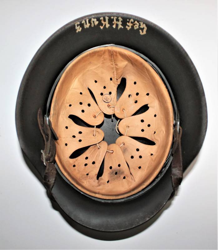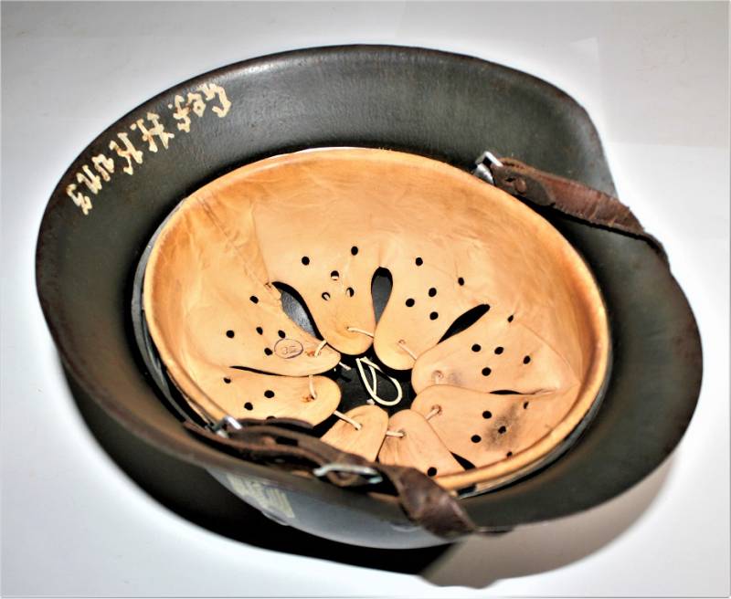 On the back of the helmet name of the soldier written in varnish. 100% original WWII period and rare to find in these conditions!