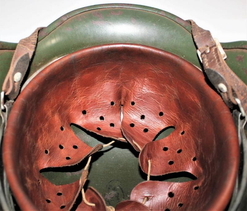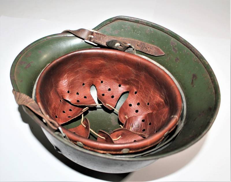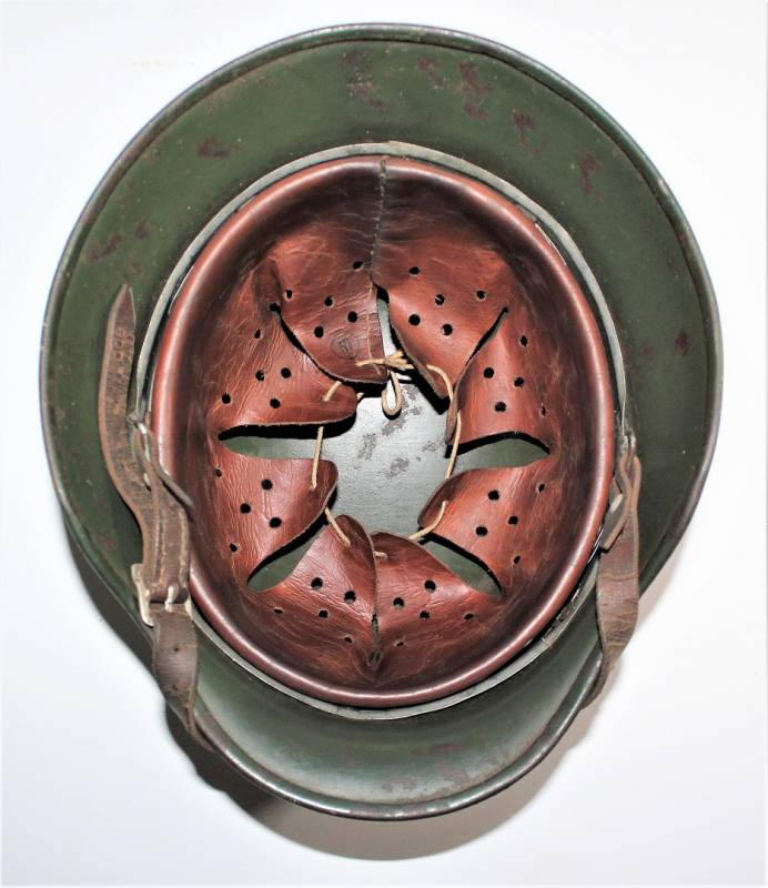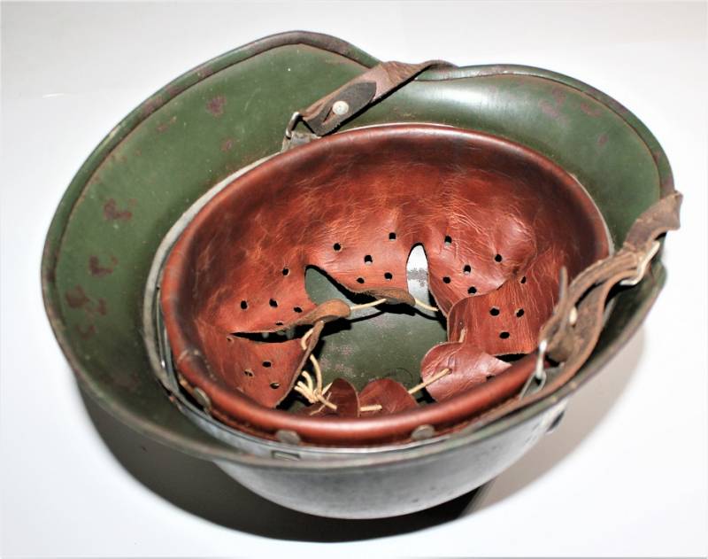 On the cap of the helmet you can see the oval acceptance stamp with the date 1940. Original 100% WWII period.