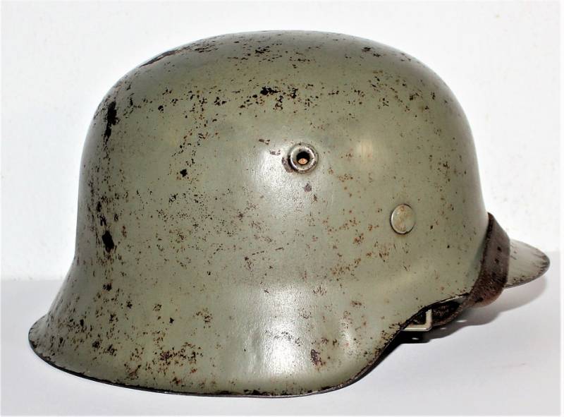 Helmet M42 singoldekal of the Kriegsmarine born in typical ship gray color 1st type at 80%, excellent condition with patina of time and use, not restored or repaired, complete in all its parts, liner and chinstrap never disassembled, leather in excellent Condition not damaged, only patinated from use, chinstrap marked with manufacturer code and date 1942, decal in excellent condition almost 100%.