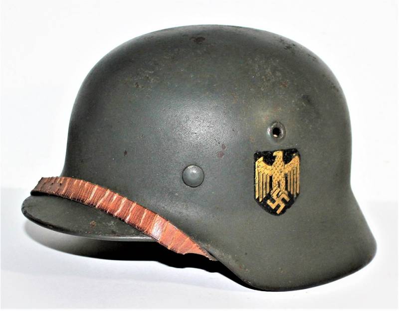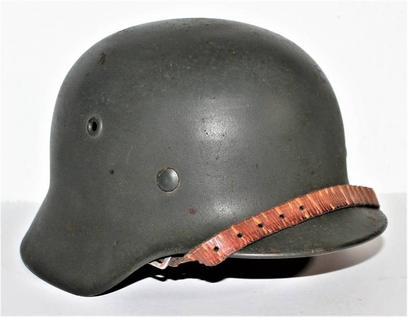 Kriegsmarine M40 helmet singoldekal born in wrinkled dark feldgrau green color with 95%, excellent condition with a slight patina of time and use, not restored or repaired, complete in all its parts, liner and chinstrap never disassembled, leather in excellent Condition not damaged only patinated from use, on the chinstrap you can see the name of the manufacturer and the date 1940, decal in excellent condition, almost 100%.