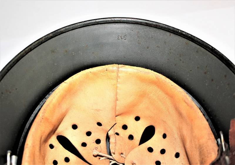 Inside the helmet on the shell is clearly visible the oval acceptance stamp with the date 1940, iron marked with manufacturer code ET62 and lot number, leather size 55. Original 100% WWII period.