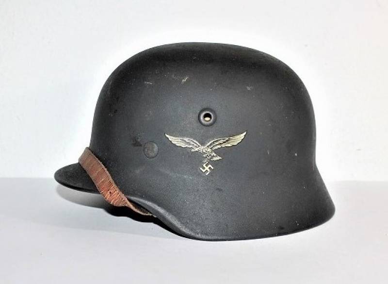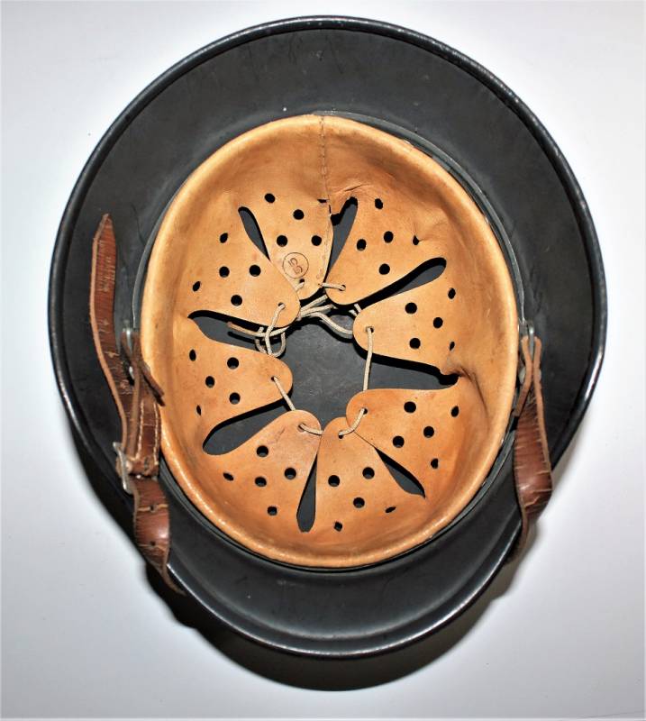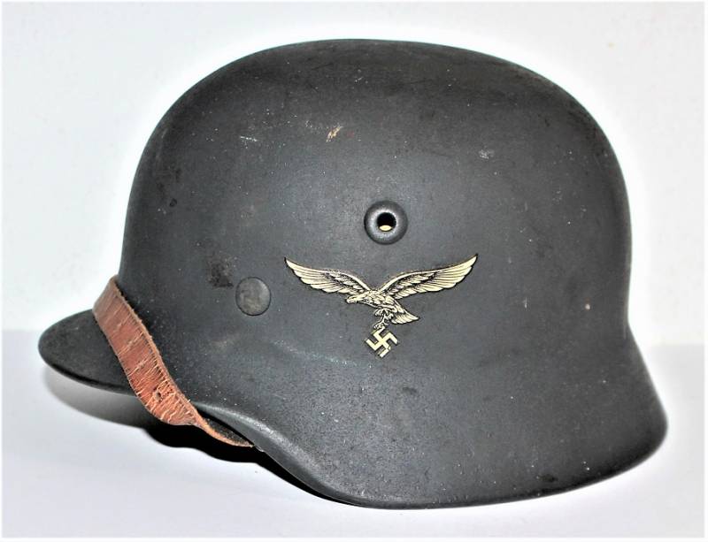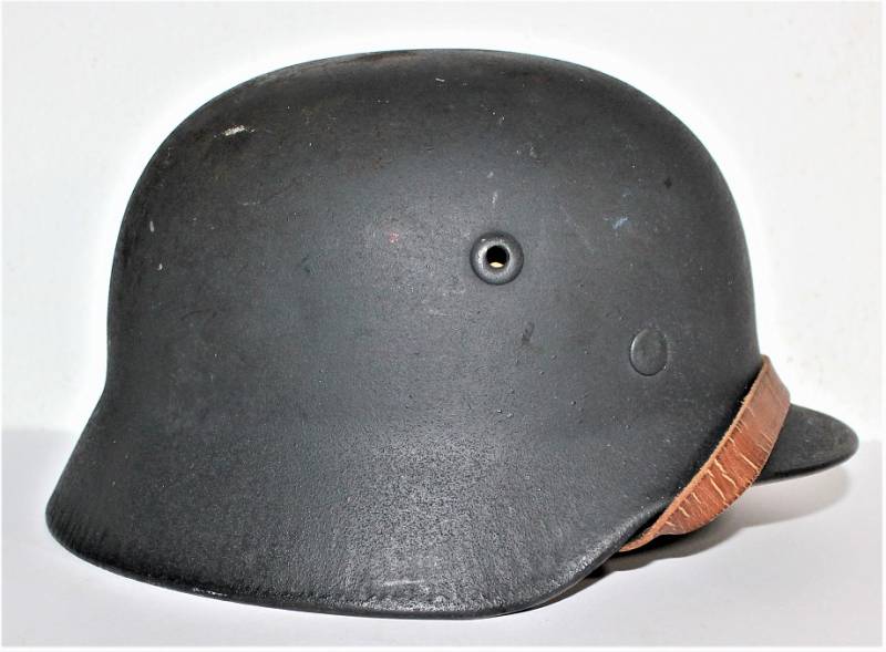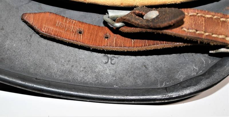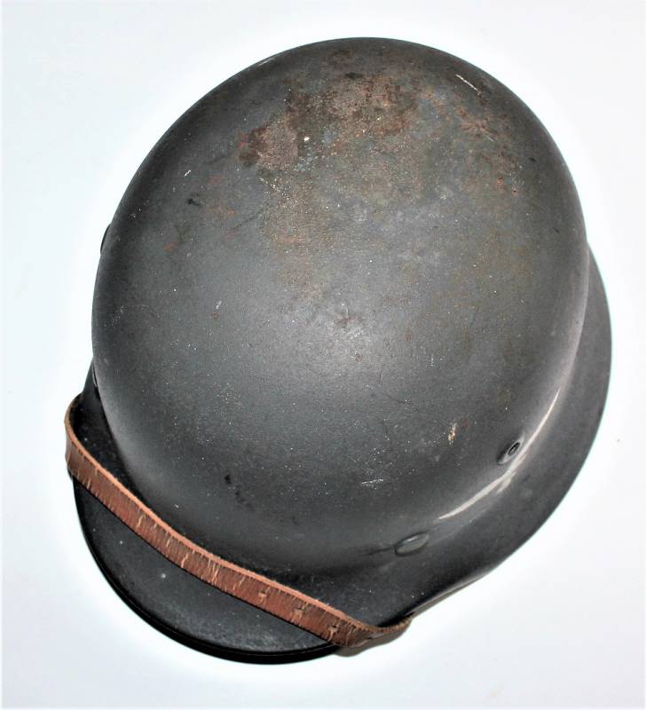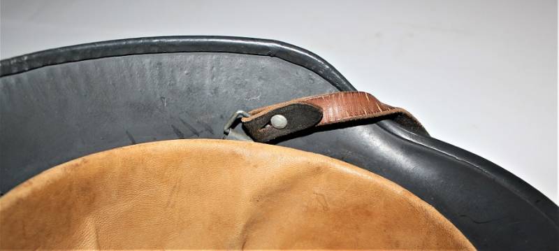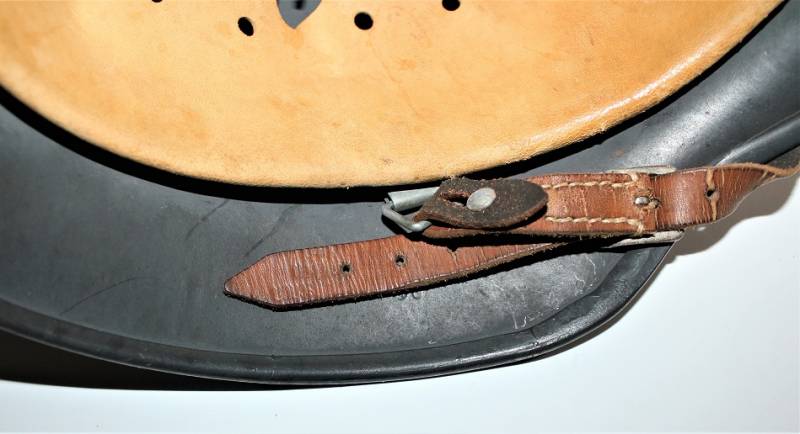 The helmet was found without chinstrap and a 100% original chinstrap was then applied and in excellent condition compatible with the helmet, marked with manufacturer name and date 1941. The helmet is marked on the iron Q62 and lot number . Leather size 55. Original 100% WWII period.