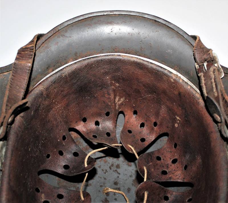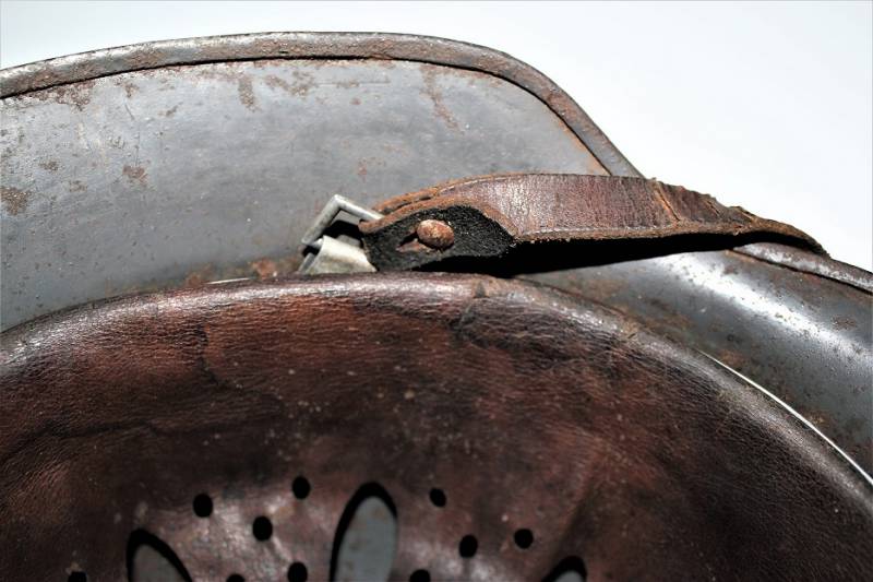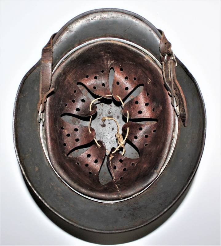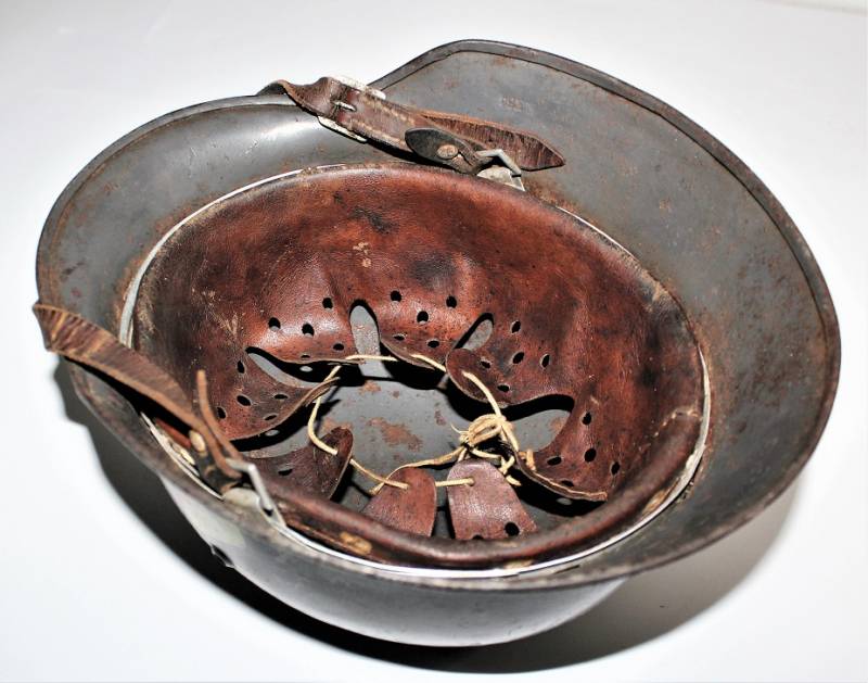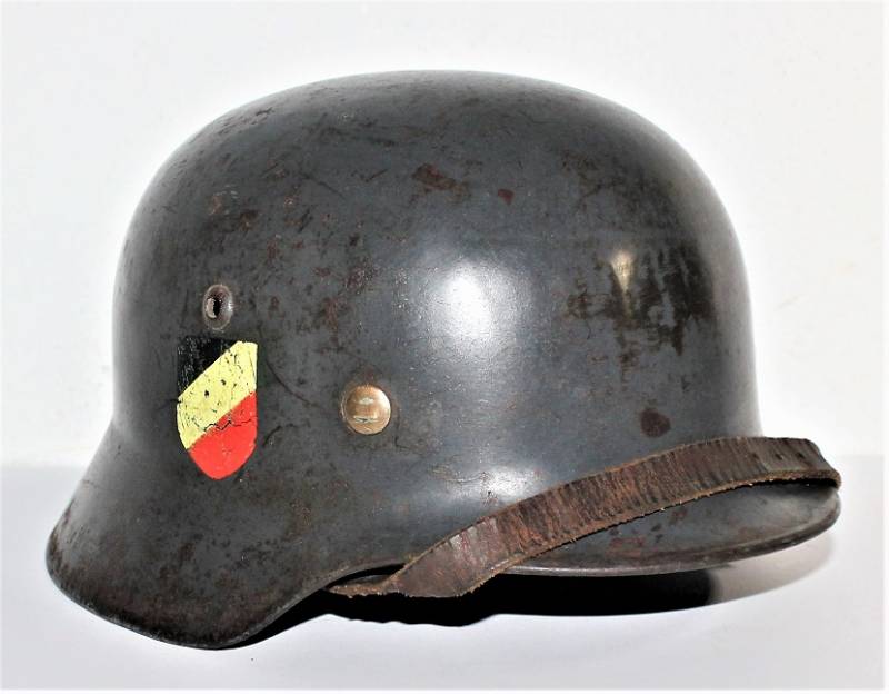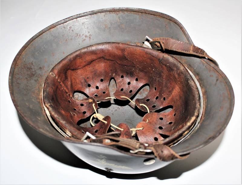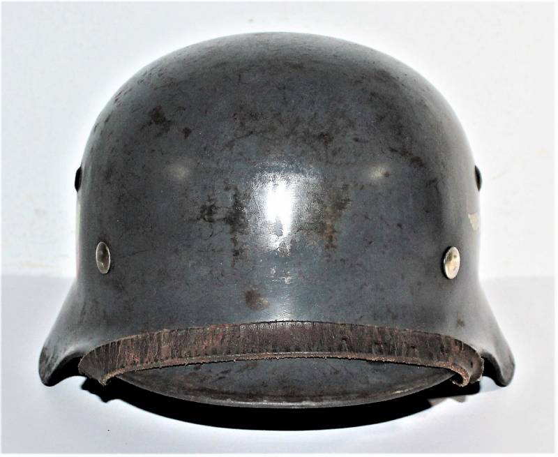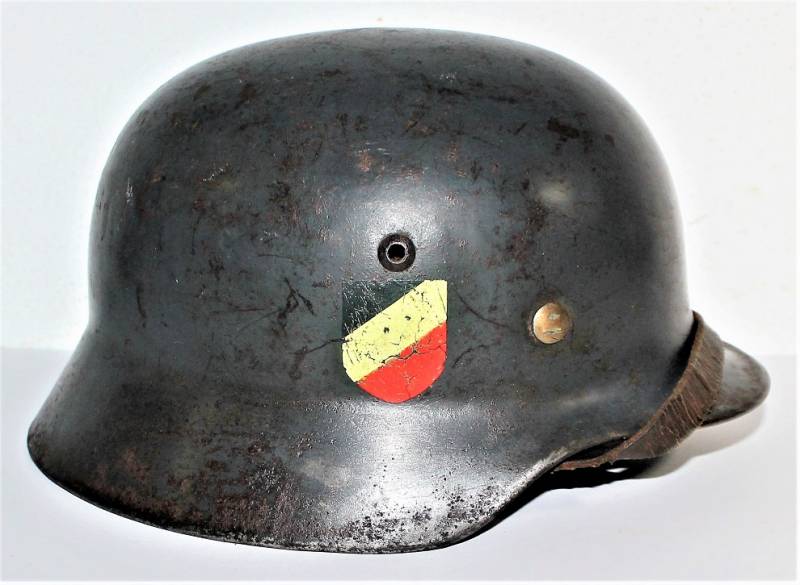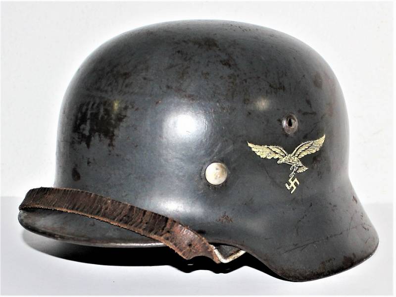 Helmet M35 of the LW bidekal born in Luftwaffe blue color in good condition, not restored or repaired and never disassembled, complete in all its parts, only patina of time and use, (in some places rust spots), 80% color, decals in good condition, 90% eagle and 90% tricolor, also patinated by time, worn leather, used, but in good condition and not damaged. The helmet is marked on the iron E.F.64 and lot number, leather size approx. 57, chinstrap marked with the name of the manufacturer and the date 1939.