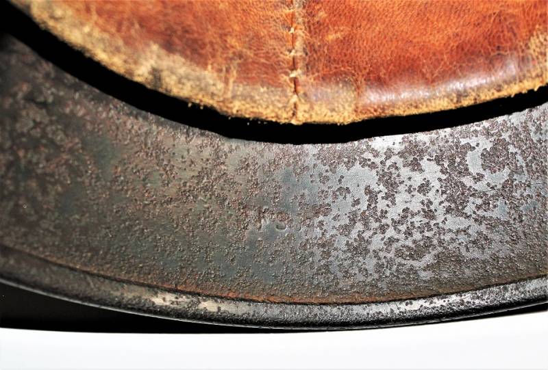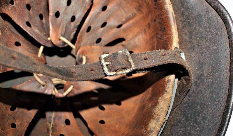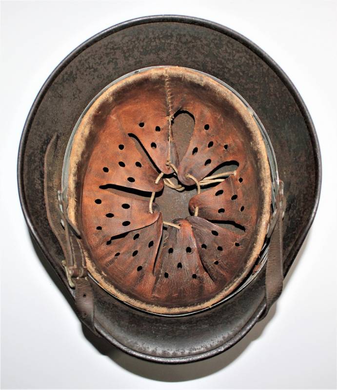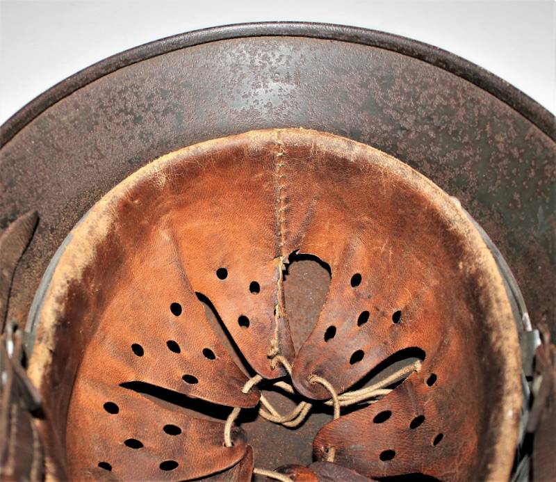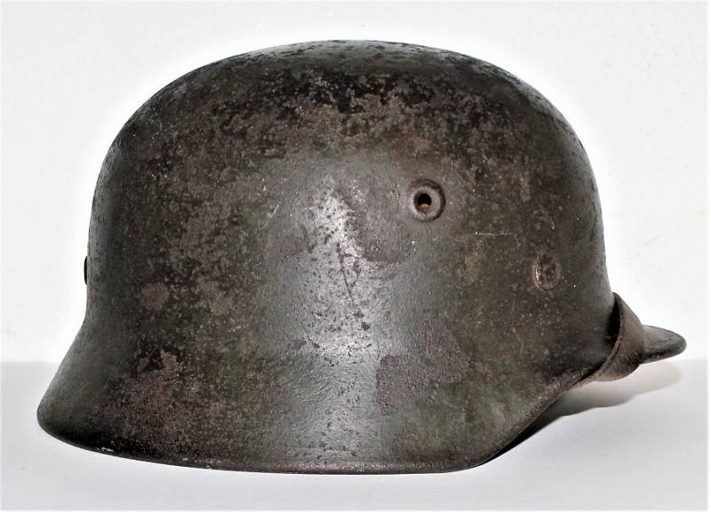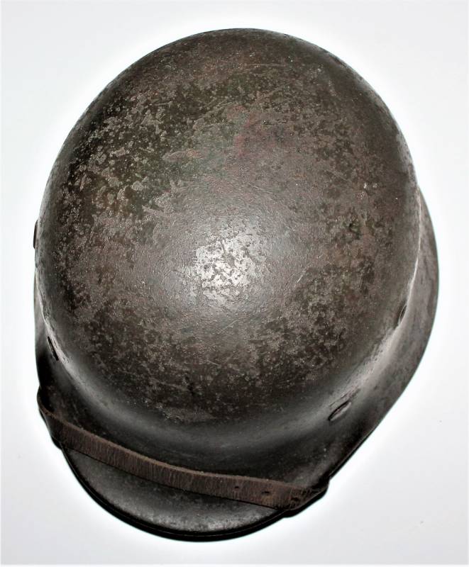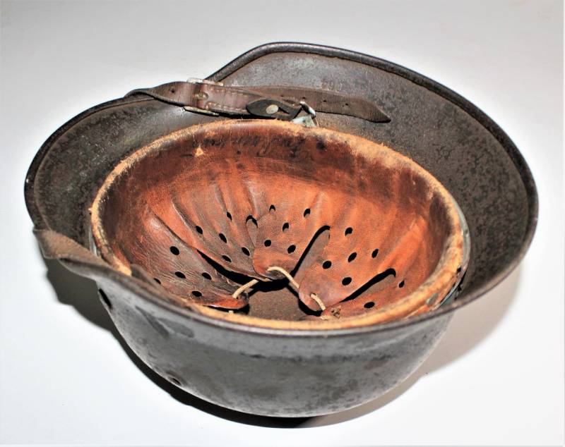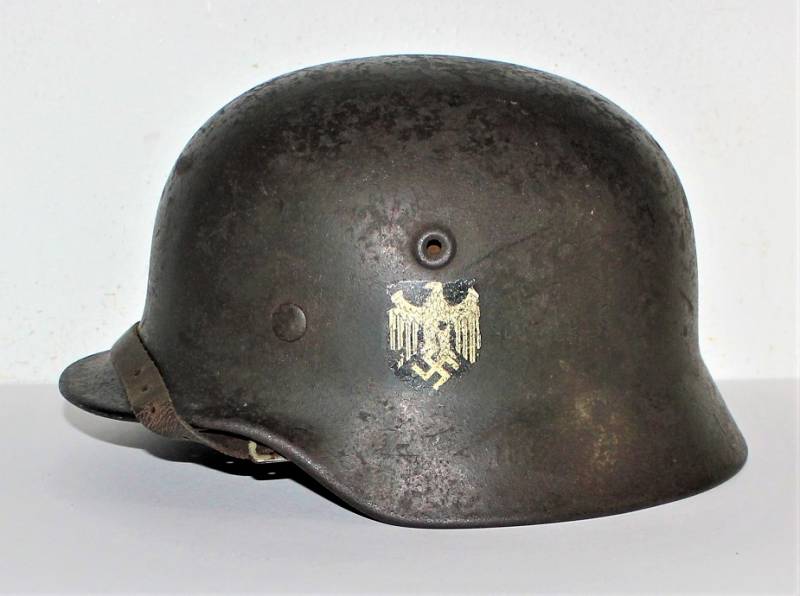 Helmet M40 singoldekal of the WH born in wrinkled feldgrau green color with 60% paint in good condition with patina of time and use, some traces of rust but not restored or repaired, complete in all its parts, liner and chinstrap never disassembled, leather in good condition, not damaged, only patinated by use, with the soldierīs name written, the name of the manufacturer and the date can be seen on the chinstrap, decal in good condition 75-80% patinaed by time, iron marked with manufacturer code Q64 and lot numbers, size of the skin 56-57. 100% original WWII period.