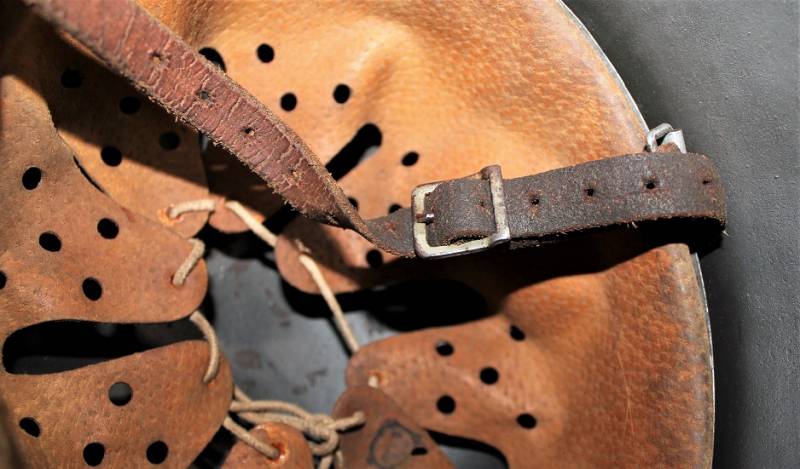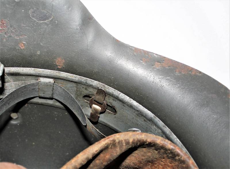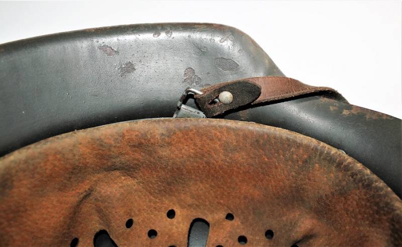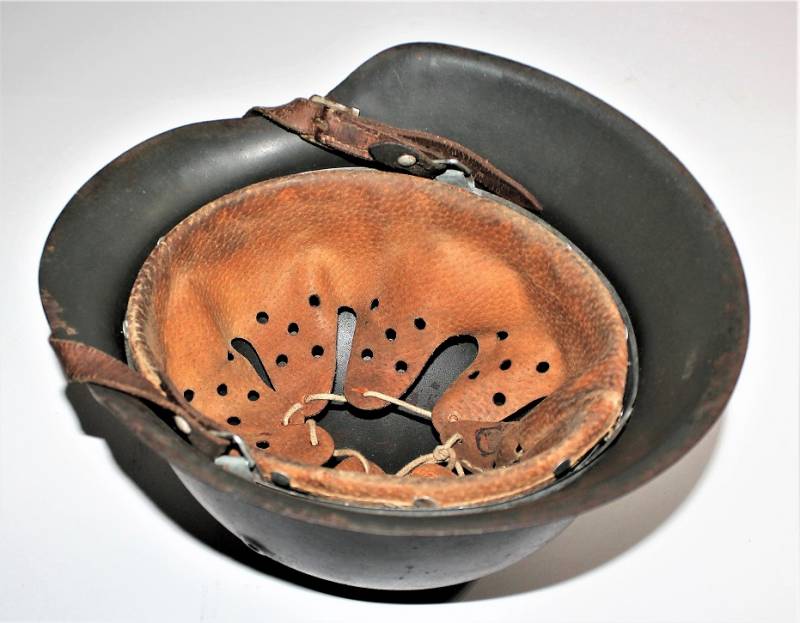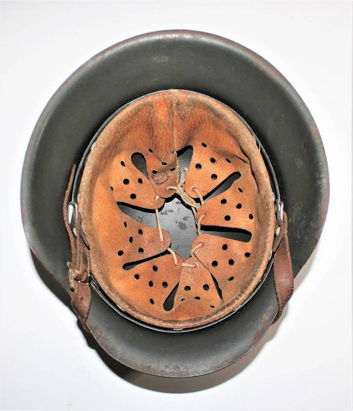 M42 monodekal helmet in good condition, with patina of time and use, complete in all its parts, liner and chinstrap never disassembled, born in 90% wrinkled dark feldgrau anti-glare color, 85% decal slightly patinated over time, iron marked with manufacturer code and lot number, leather size 55, chinstrap marked with manufacturer name and date 1941.