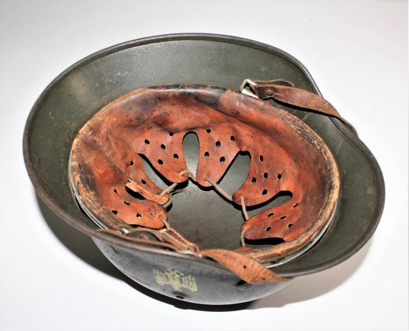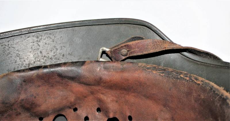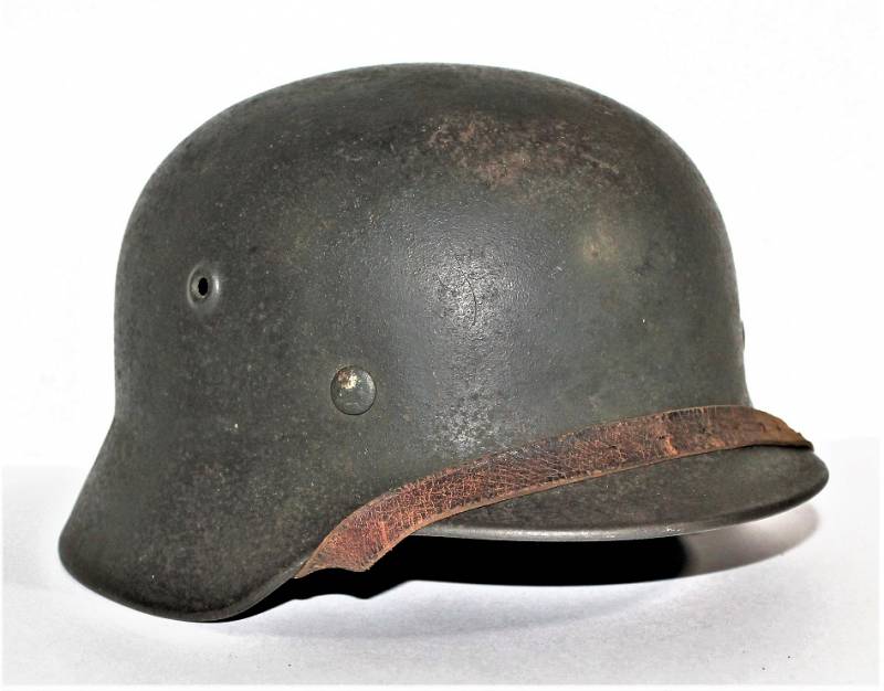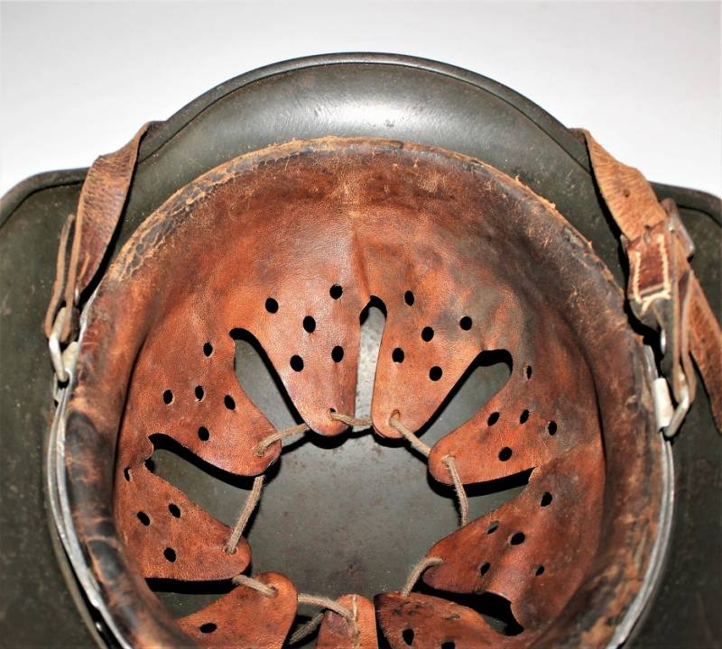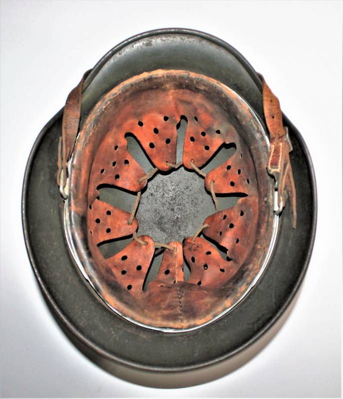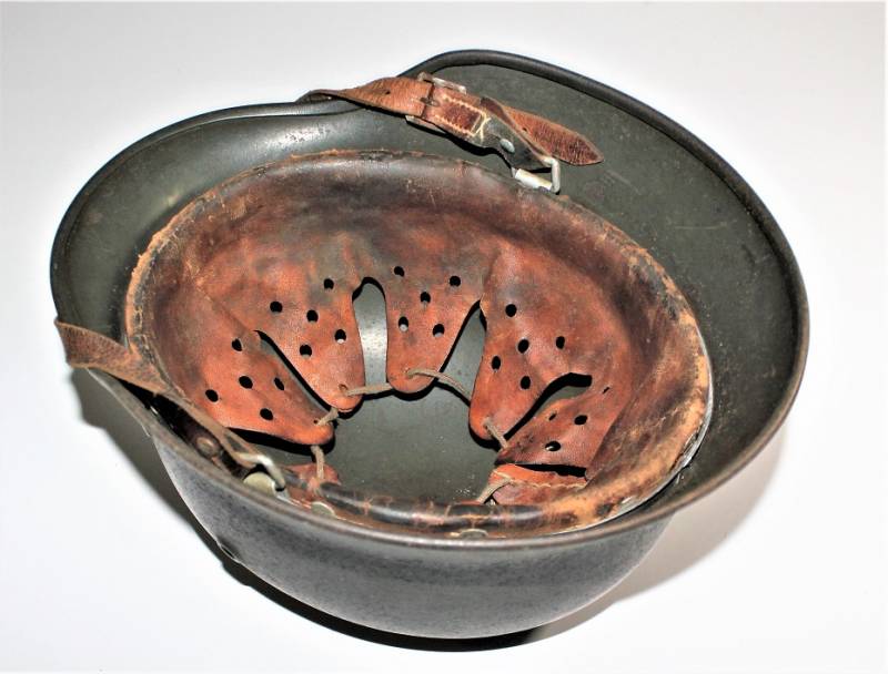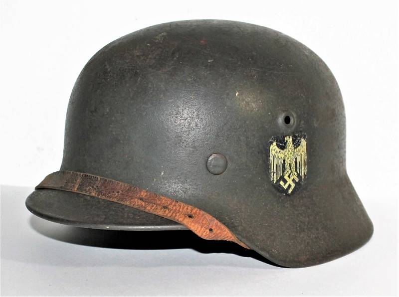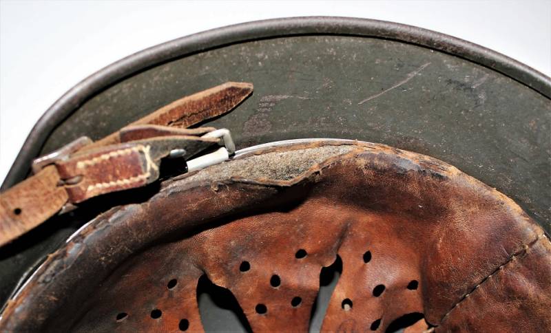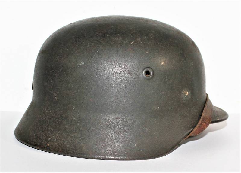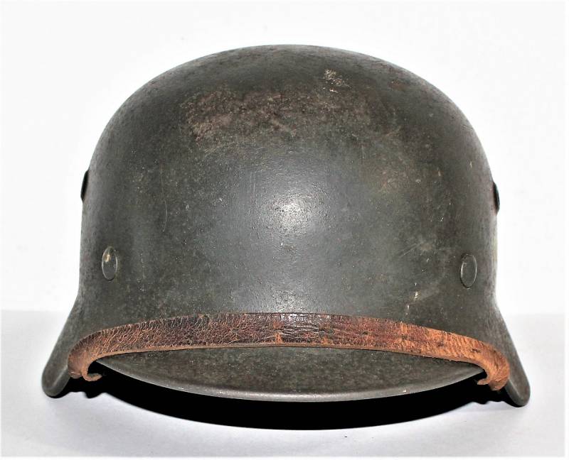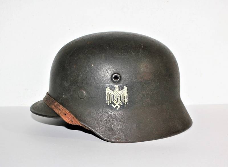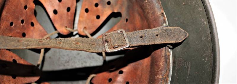 Helmet M40 singoldekal of the WH born in wrinkled feldgrau green color with 80-85% paint in good condition with patina of time and use, not restored or repaired, complete in all its parts, interior and chinstrap never disassembled, leather of the liner in good condition but slightly damaged on the right side (see photo), chinstrap marked with RBN n ... dekal in good condition 90% patina with time, iron marked with manufacturer code Q66 and lot numbers, leather size 61.